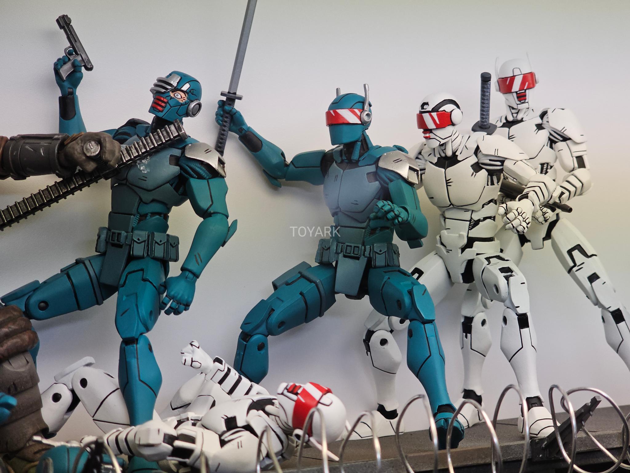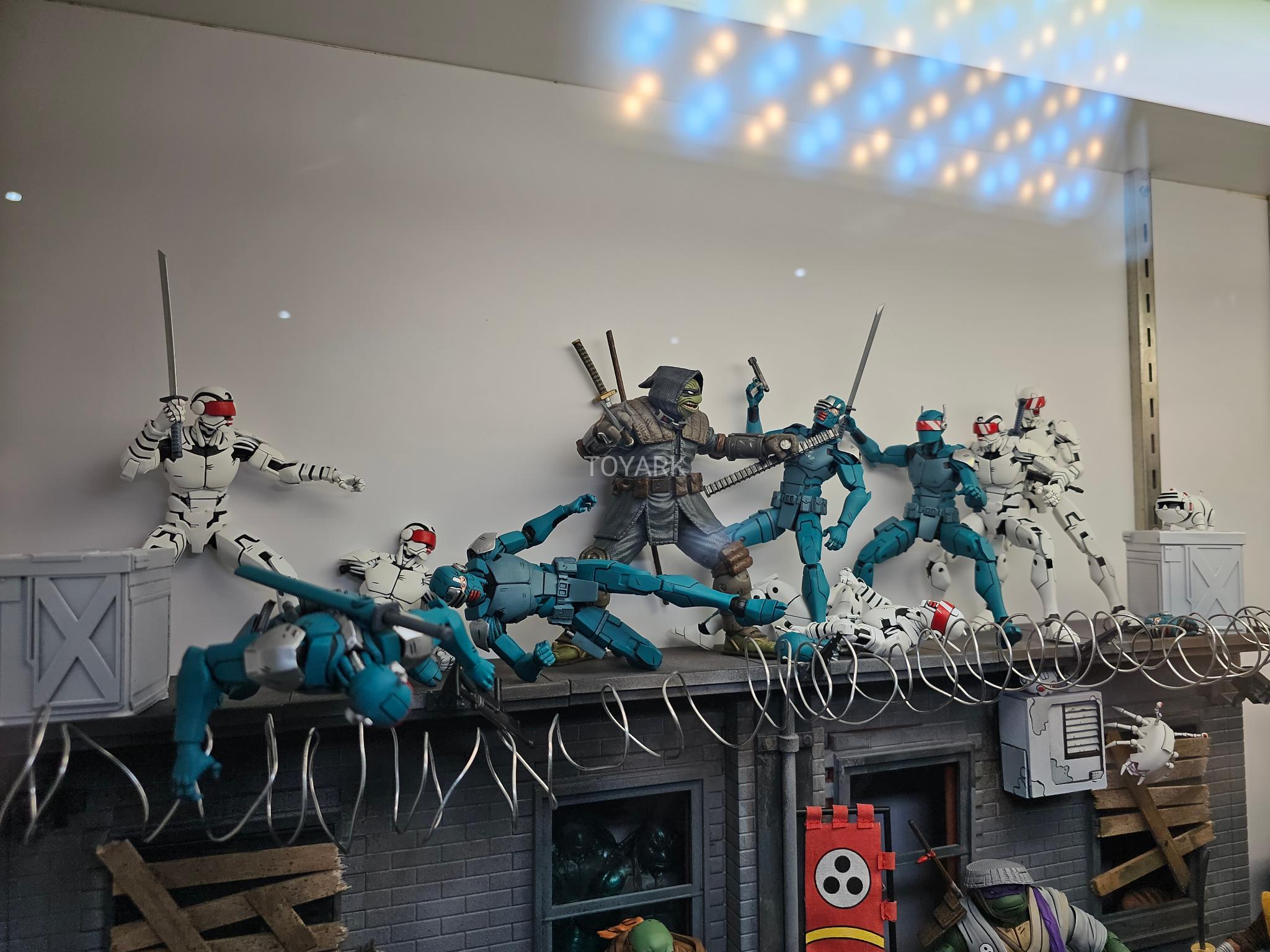 Dès le 1er juin 2023, le site américain Best buy a proposé plusieurs figurines en avant-première, dont le Synja patrol bot. Les robots de surveillance de Oroku Hiroto proposent de nombreuses têtes alternatives en lien avec le comic et leurs différentes apparitions. Annoncés pour le début du mois d’août, ils sont sortis finalement une semaine plus tôt aux États-Unis.