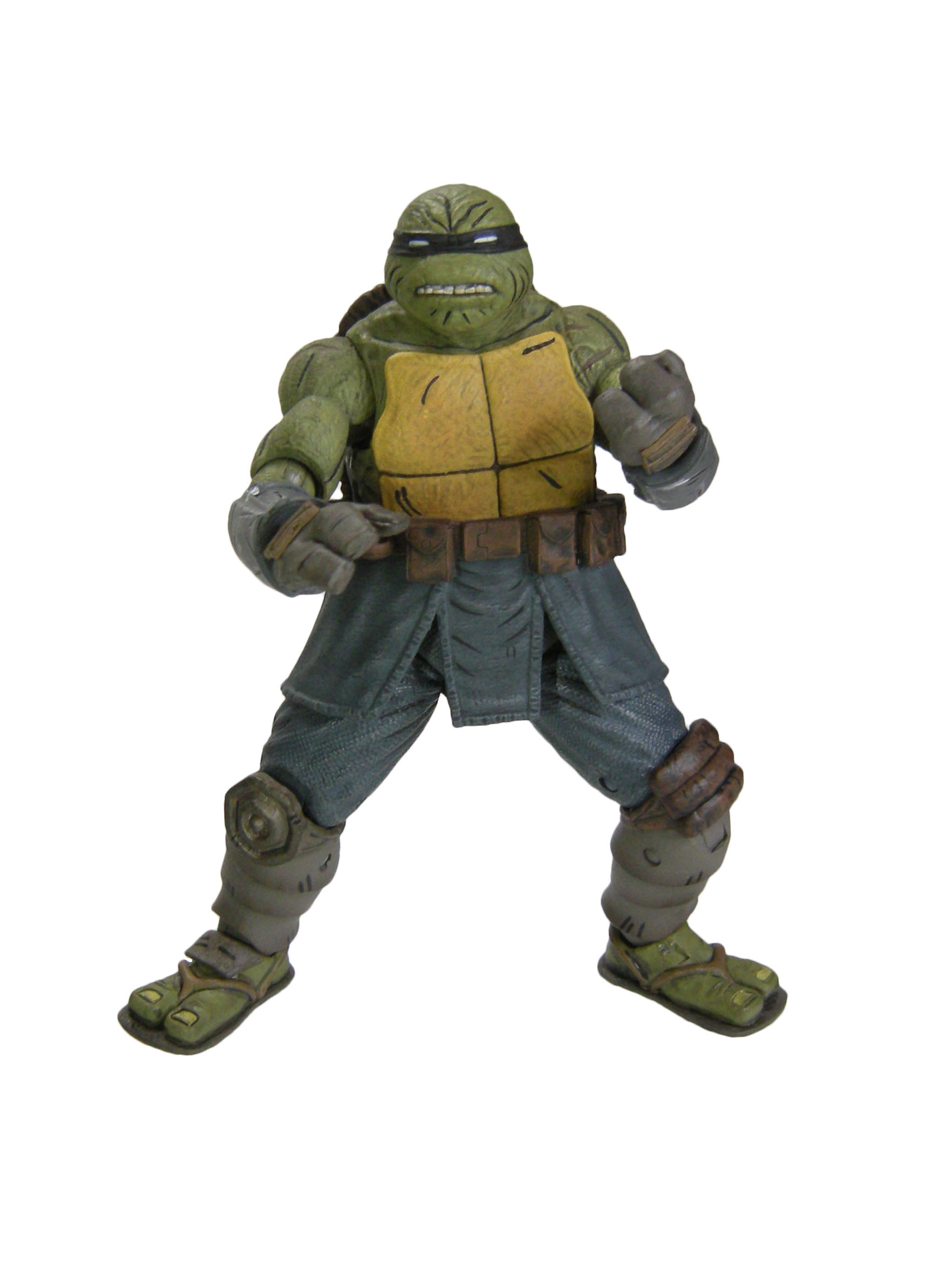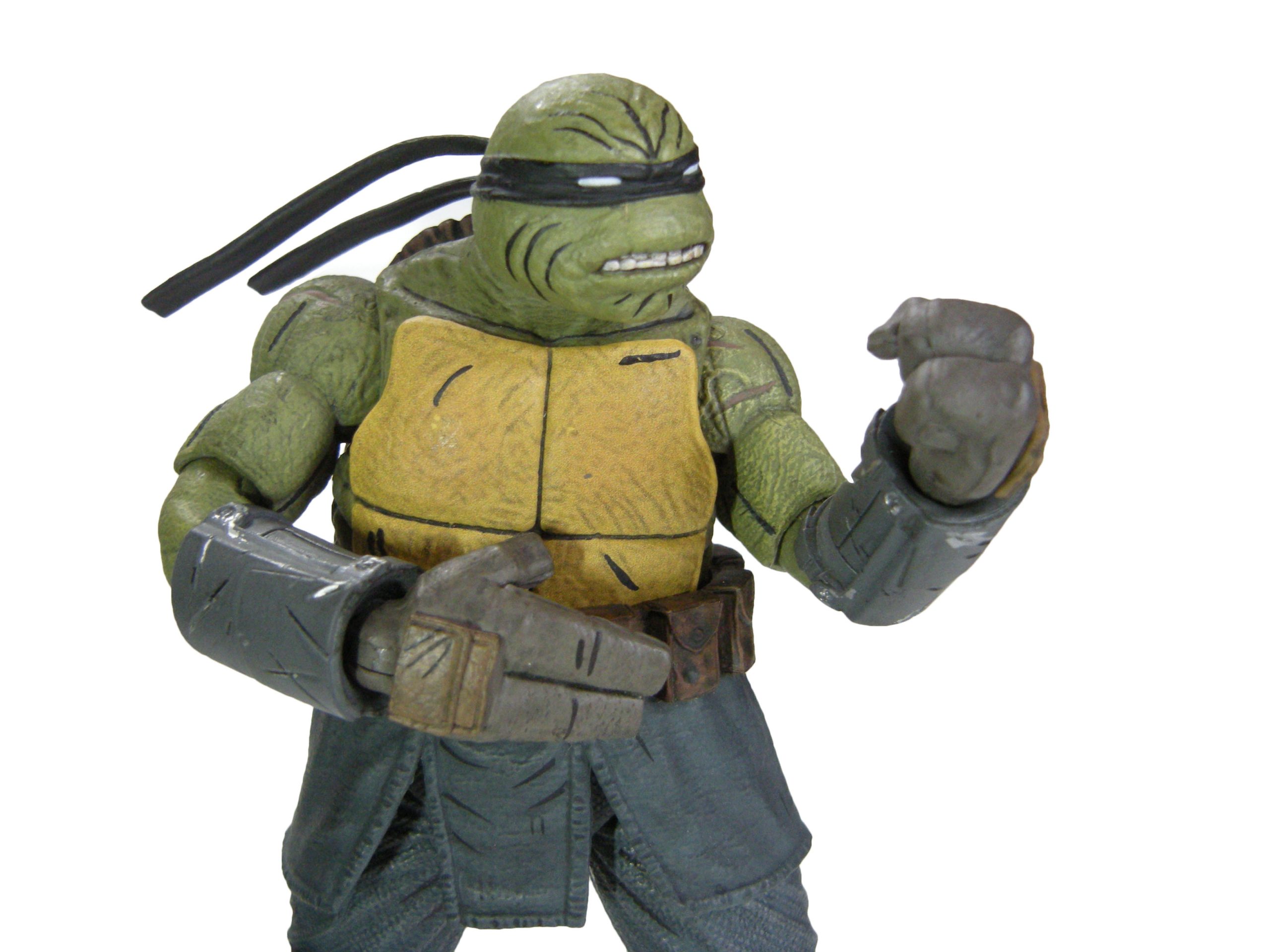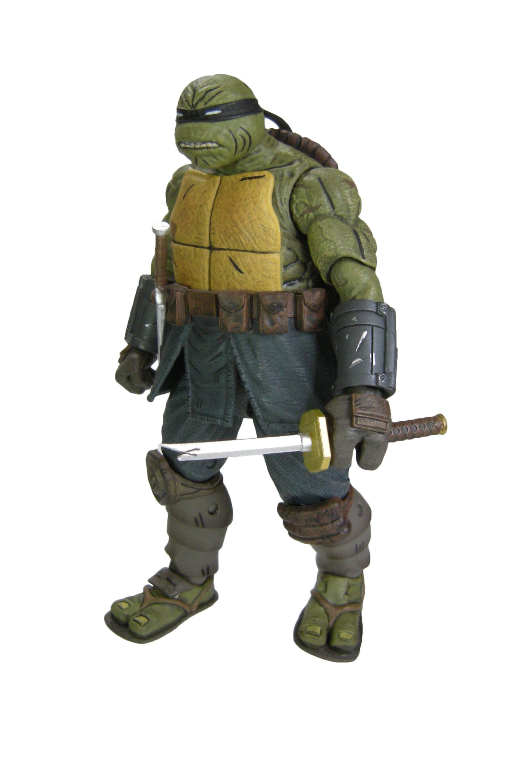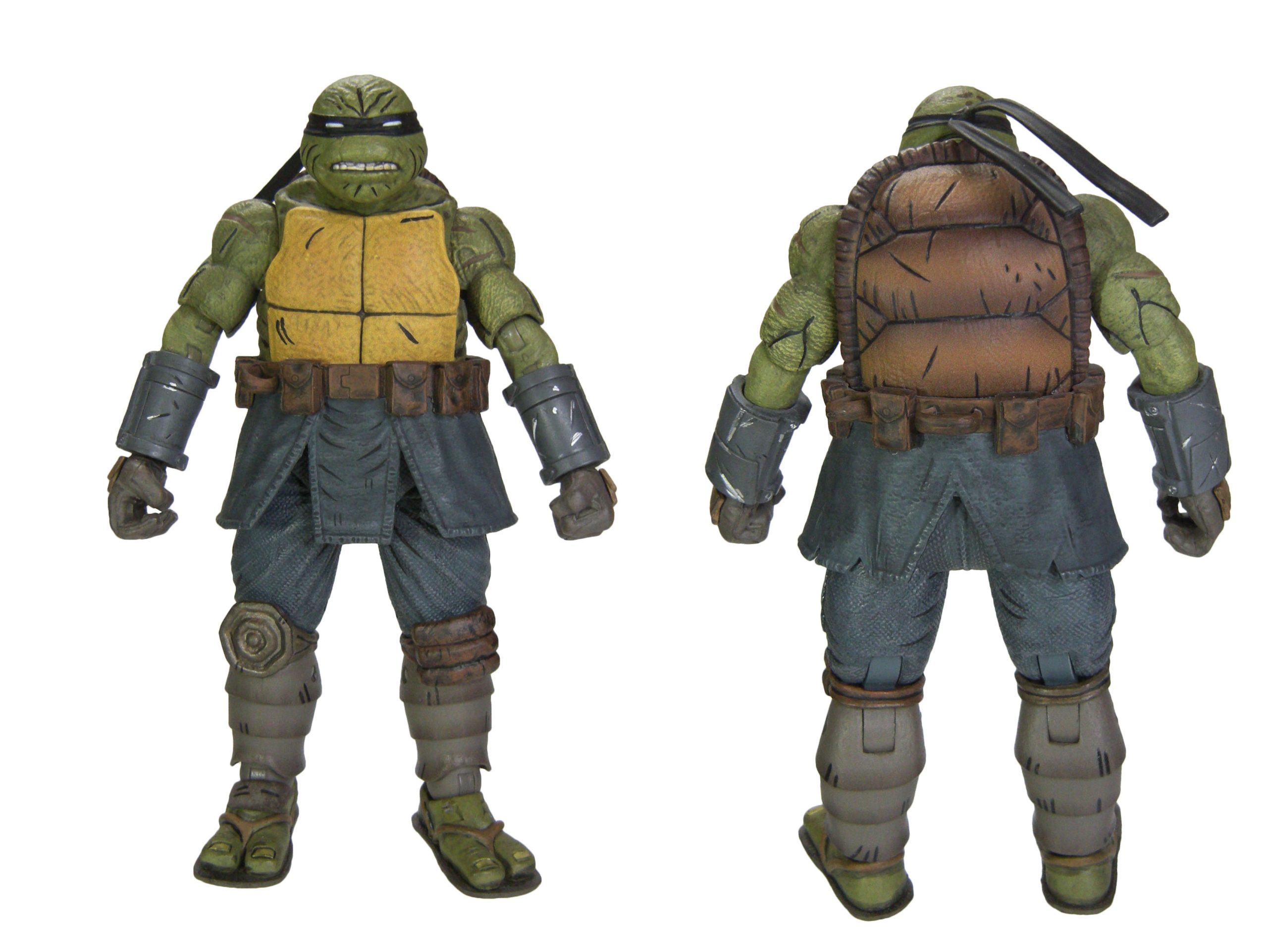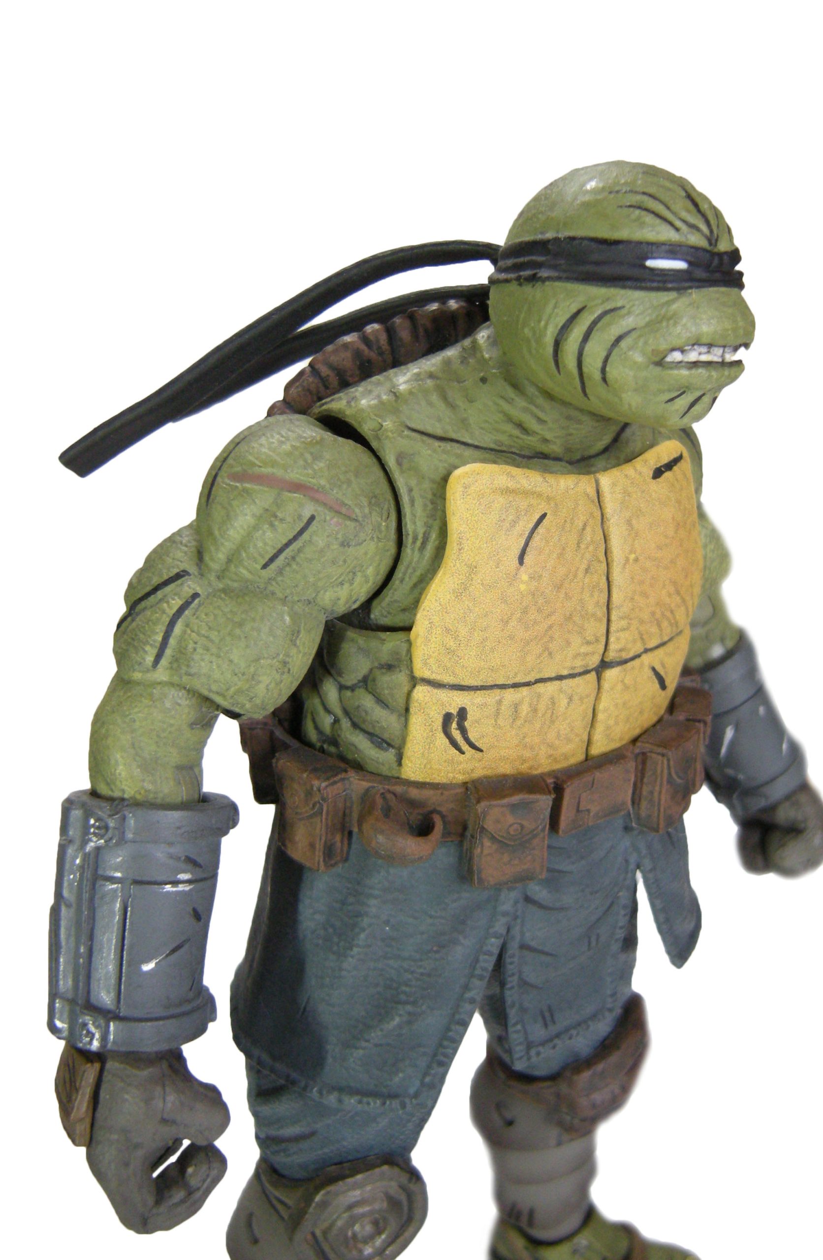 Deux versions ont été sculptées par Paul Harding. Cette version propose la tortue sans sa combinaison, tel qu’il est à la fin de The last ronin #1. Elle dispose d’un grand nombre d’armes pour mener le combat face à Oroku Hiroto. Les deux têtes interchangeables peuvent se fixer également sur la version « armored » de la figurine, totalisant quatre expressions différentes.