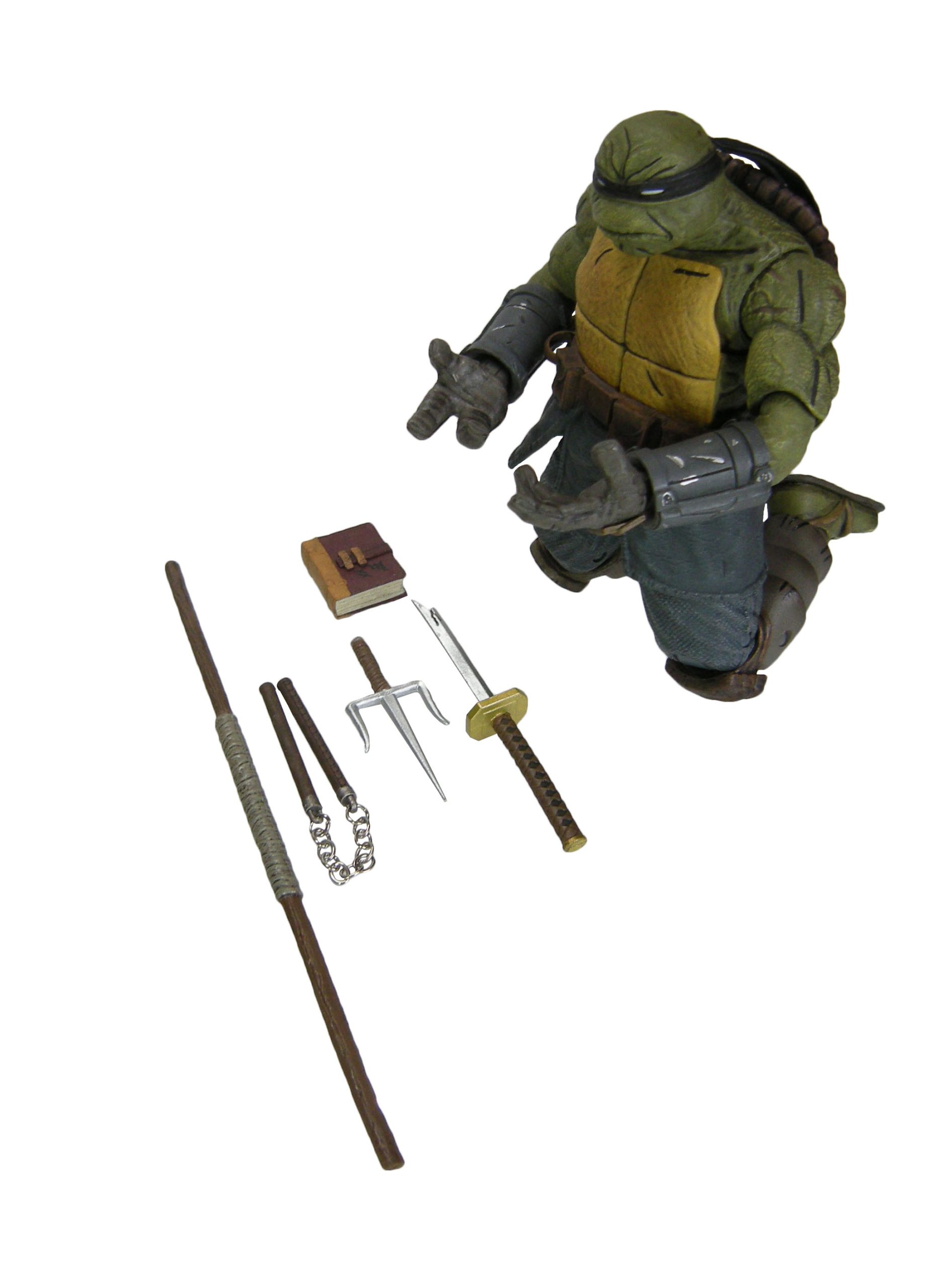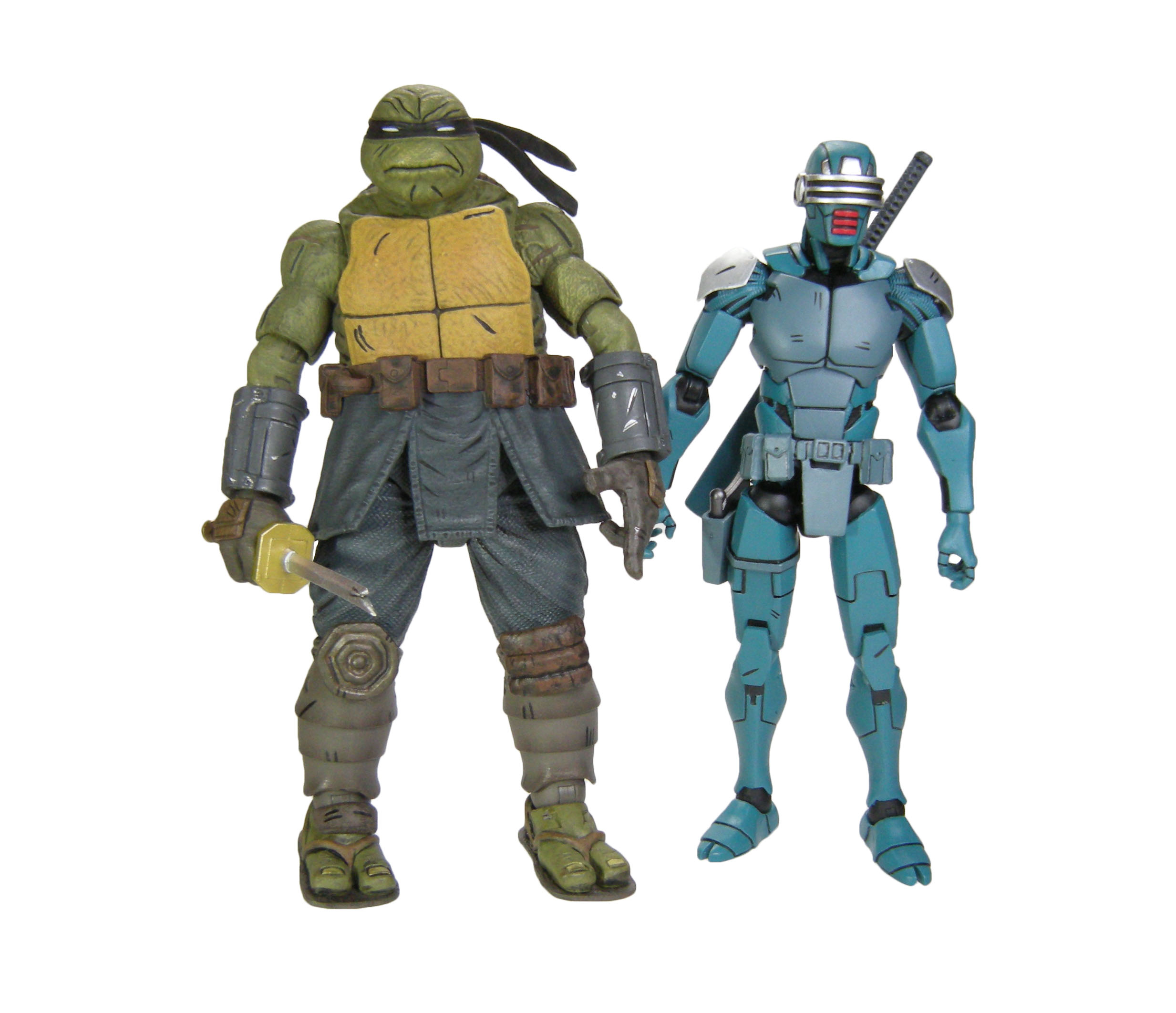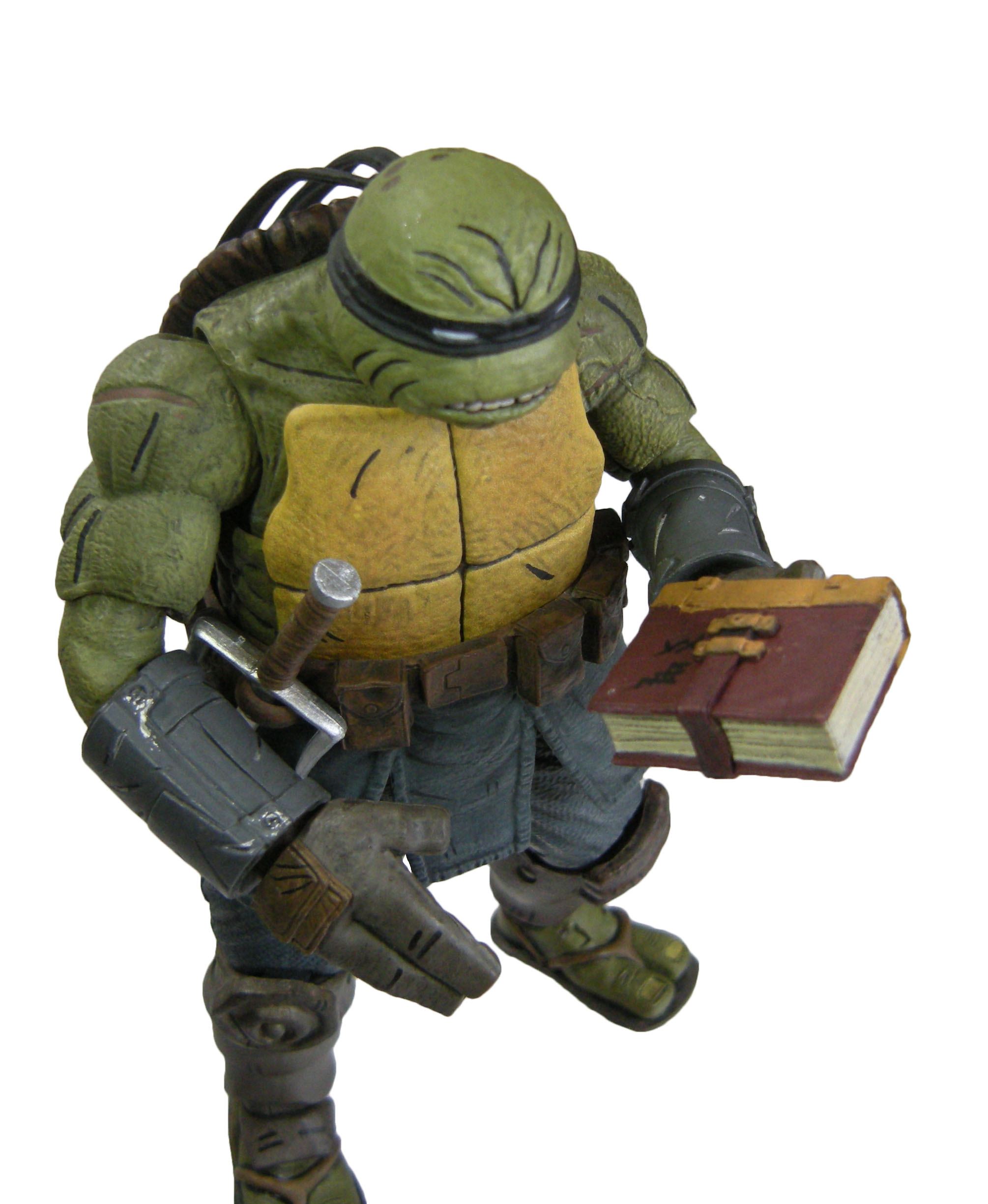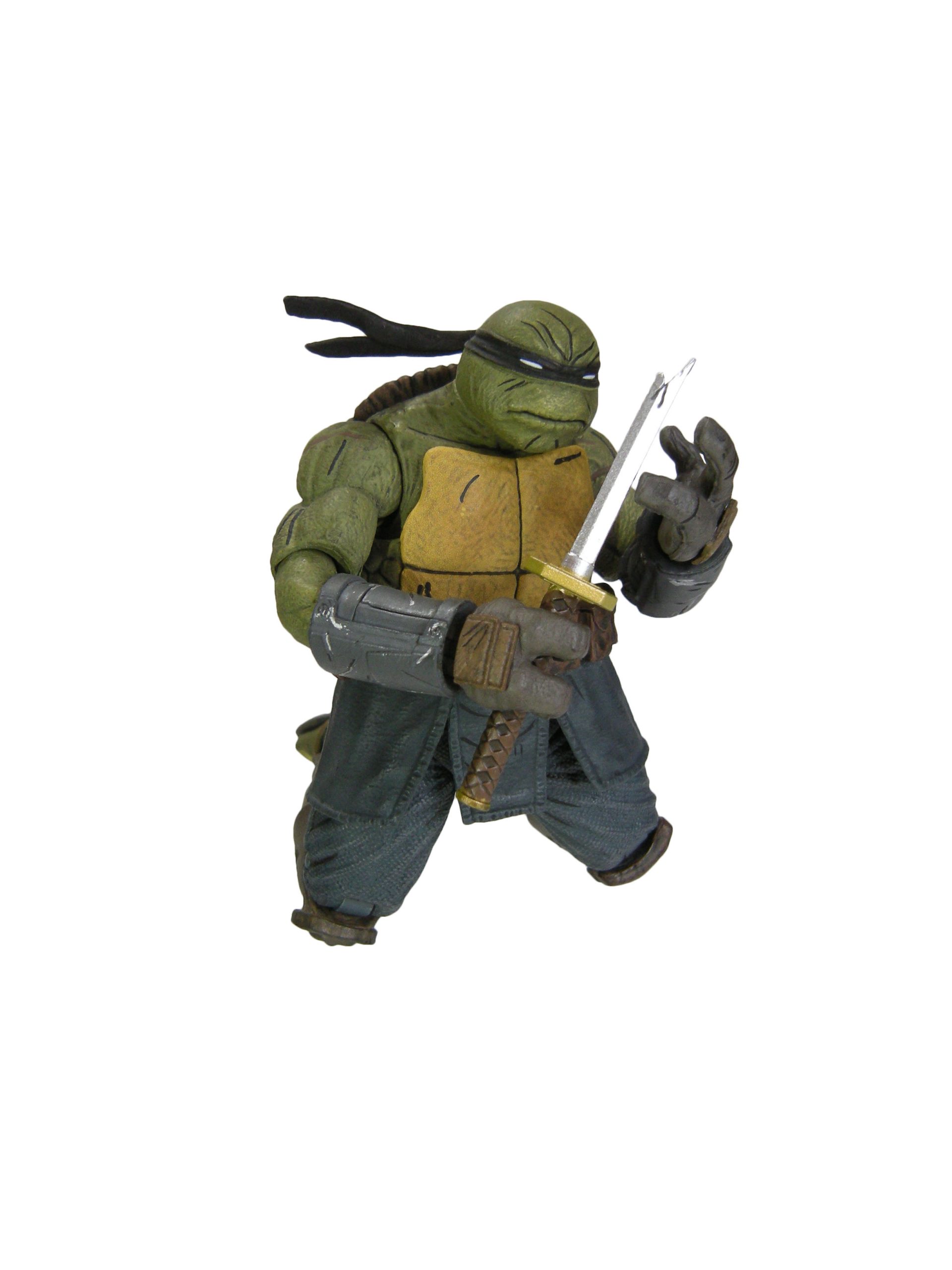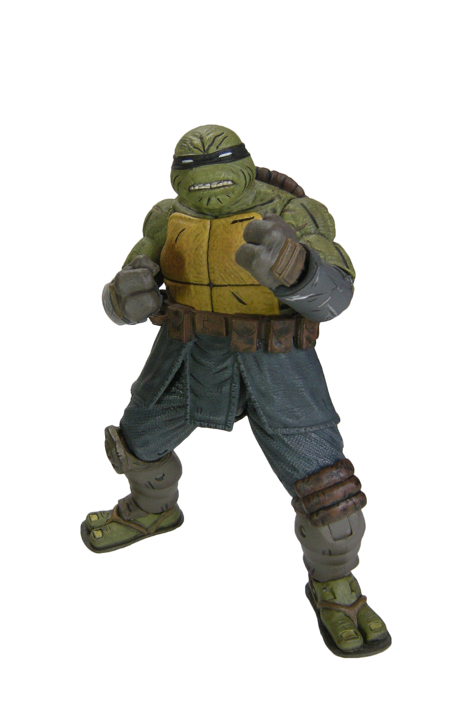 Deux versions ont été sculptées par Paul Harding. Cette version propose la tortue sans sa combinaison, tel qu’il est à la fin de The last ronin #1. Elle dispose d’un grand nombre d’armes pour mener le combat face à Oroku Hiroto. Les deux têtes interchangeables peuvent se fixer également sur la version « armored » de la figurine, totalisant quatre expressions différentes.