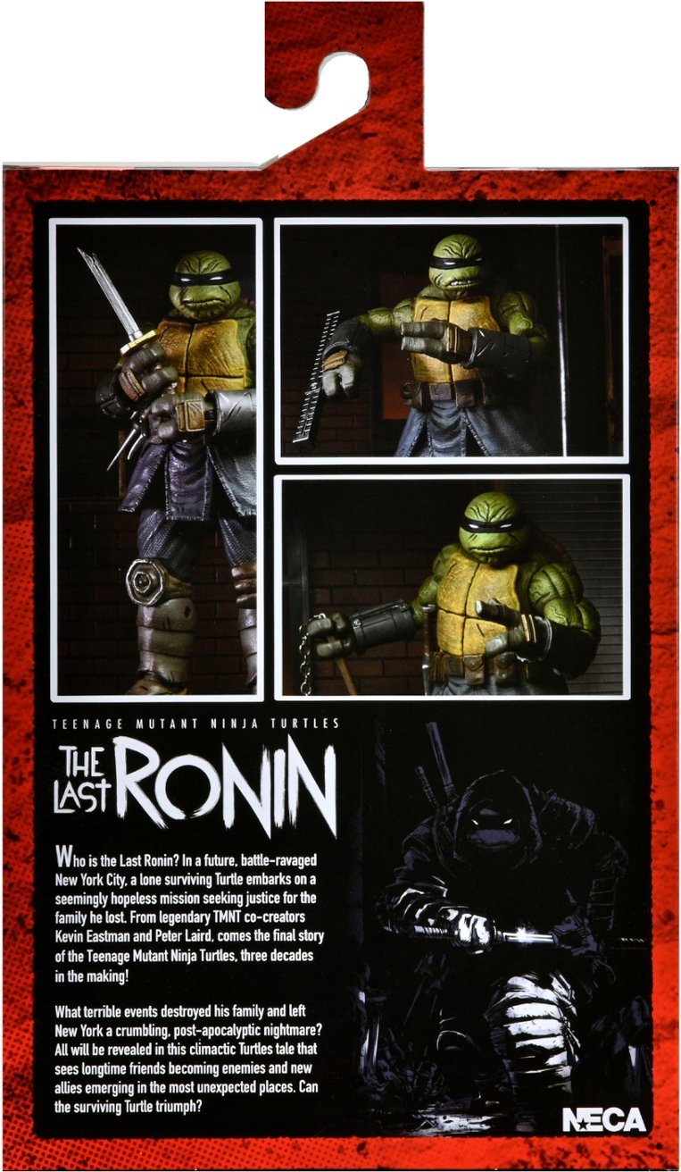NECA a été fortement plébiscité par les collectionneurs pour réaliser des figurines autour de l’univers sombre de The last ronin à partir de 2021. Ce comic avait été annoncé dans les pages du TMNT #100 en décembre 2019, mettant à l’honneur un scénario original de Kevin Eastman et de Peter Laird. À sa sortie, cet univers a immédiatement été acclamé par la presse et par les fans.