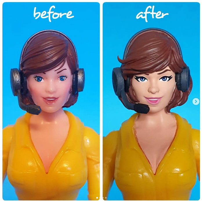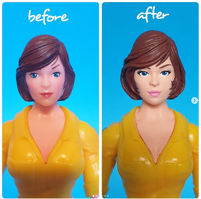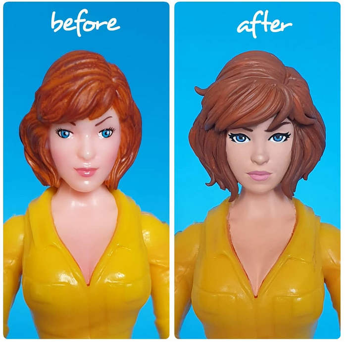 Les visages définitifs d’April ont été réalisés par Thomasz Rozejowski. Nous ne savons pas si The Four Horsemen ont travaillés sur cette figurine. Les fans s’étaient offusqués des traits ratés des versions montrées en prototype. Super7 a alors contacté Rozejowski pour apporter une touche à ceux-ci. Il en partage l’évolution sur son Instagram.