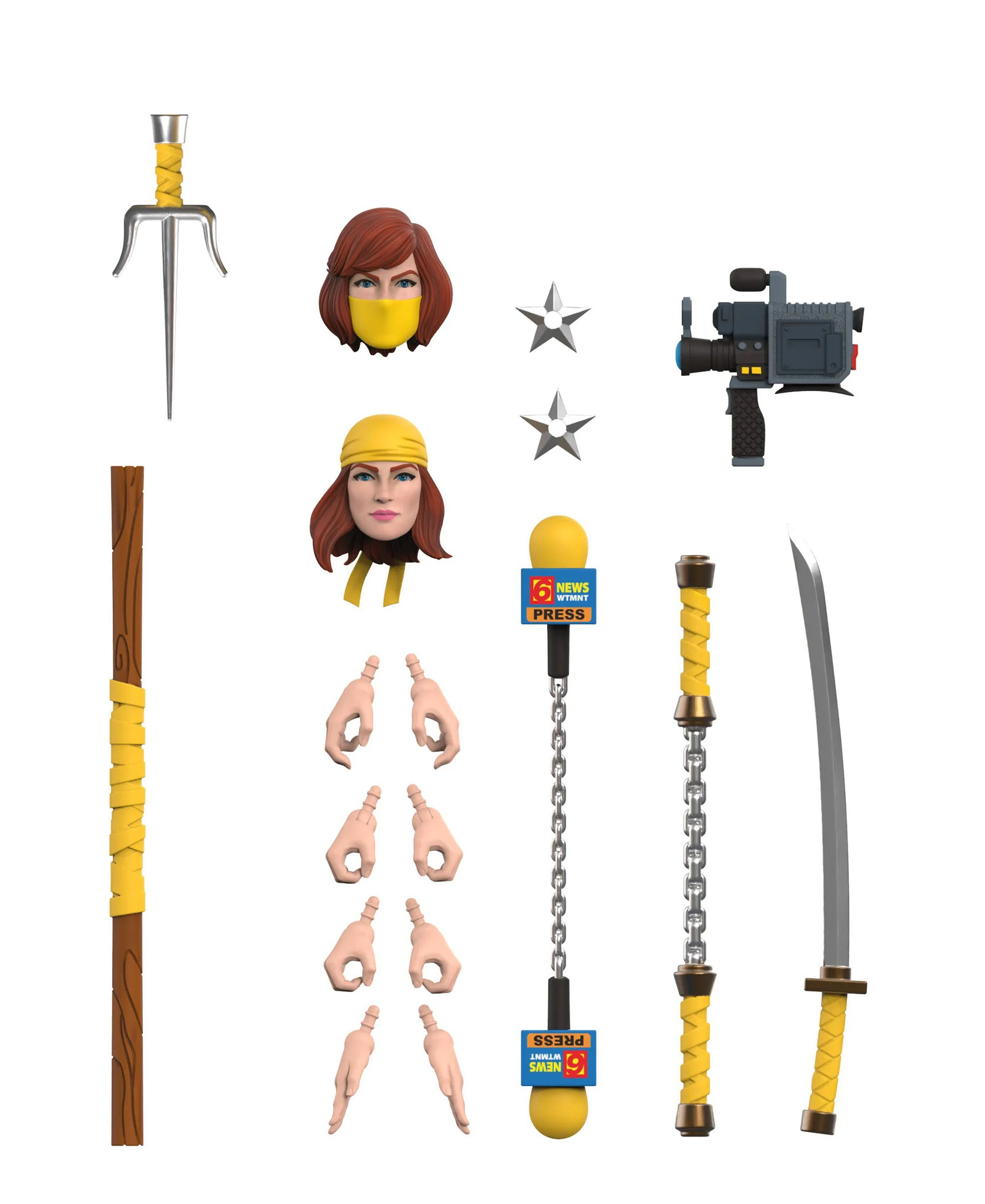 Ninja April est sensée reprendre la figurine April, The ninja newcaster, sortie chez Playmates Toys en 1992. Toutefois, d’importantes modifications ont été apportées à son personnages. Ainsi qu’à beaucoup d’autres à partir de cette série. Les fans se sont donc demandés si Super7 n’avait pas rencontré de problèmes avec le fabricant historique des Tortues Ninja, à l’instar du douteux Rat King, qui désirait rééditer un grand nombre de figurines vintages à partir de 2022.