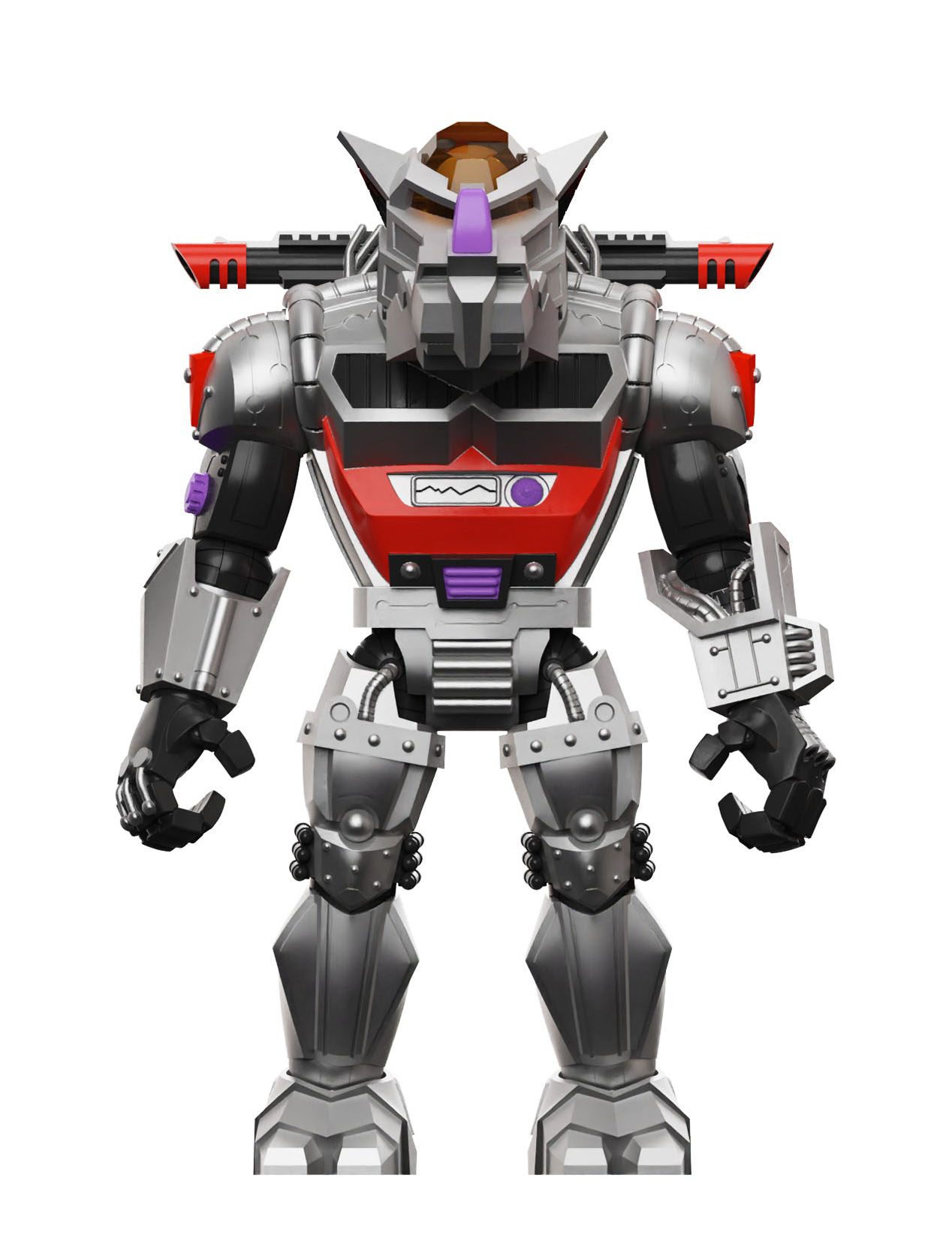 La figurine de Robotic Rocksteady (nommée d’ailleurs robot Rocksteady…) reprend l’ensemble des accessoires présents avec la figurine de 1993. Quelques accessoires supplémentaires ont été ajoutés comme une épée énergétique ou encore des effets de tirs au niveau des épaules.