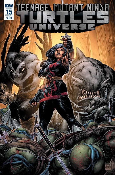 Non loin de là, jonchaient dans une mare de sang les cadavres des hommes de main envoyés par Hayashi Toru. Karai fut surprise par une voix familière derrière elle. Toshiro et Natsu étaient les responsables du massacre. Le vieil homme avertissait son ancienne élève du danger auquel ils venaient d’échapper. Tout cela grâce à l’intervention de la petite fille du yakuza. Natsu estimait à présent que les deux femmes étaient quittes. Pas encore pour Karai, qui dégaina le pistolet de la ceinture de l’un des corps sans vie et tira à l’épaule gauche de sa sauveuse. Maintenant, elles étaient quittes (TMNT Universe #12). Elle avait pris une grande décision. Celle de continuer d’honorer la volonté d’Oroku Saki de mener un grand clan et de remettre de l’ordre dans les choses. Elle repartait pour Tokyo afin de se venger de Toru. Natsu n’avait rien contre, son grand-père avait provoqué cette situation.