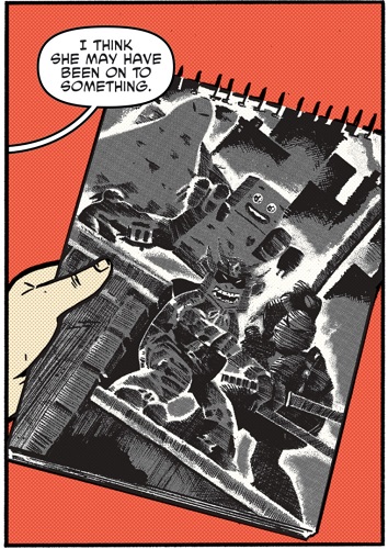 Les deux enfants, Haley et Todd, étaient effectivement prêts à en découdre avec ceux qu’ils accusaient de la destruction de leur quartier. Patrouillant dans les sous-sols du bâtiment, ils menaçaient les monstres. Ne trouvant rien, le plus jeune, Todd, se demandait s’ils existaient réellement. C’est alors qu’une policière les retrouva. Elle était visiblement à la recherche de ces fameux monstres, plutôt que des enfants. Les tortues n’étaient pas loin et cette nouvelle n’était pas pour les rassurer. Raphael était d’accord pour essayer le plan de Michelangelo.
