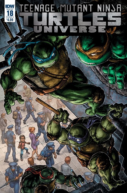 Des civils avaient été regroupés dans un immeuble du centre-ville suite à l’invasion massive des triceratons (TMNT #77). Tant des réfugiés que des blessés. La police tentait de mettre de l’ordre et répondre aux diverses questions des personnes qui demeuraient inquiètes. L’officier Kara Lewis était à la tête de l’opération, mais ne pouvait révéler la vérité sur les évènements qui touchaient New York. Deux enfants virent au-dessus de leurs têtes, dans les conduites d’aérations de l’immeuble, quatre silhouettes. C’étaient des monstres à n’en pas douter ! Leur mère ne les croyait pas. Ils allaient se lancer à leur recherche.