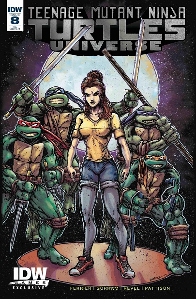 - Cover RE Exclusive IDW Games – Kevin Eastman. Pour l’achat d’un Hero Pack April O’Neil pour le jeu de plateau d’IDW Games TMNT : Shadows of the past.