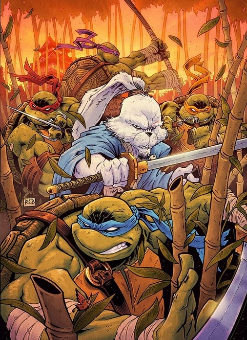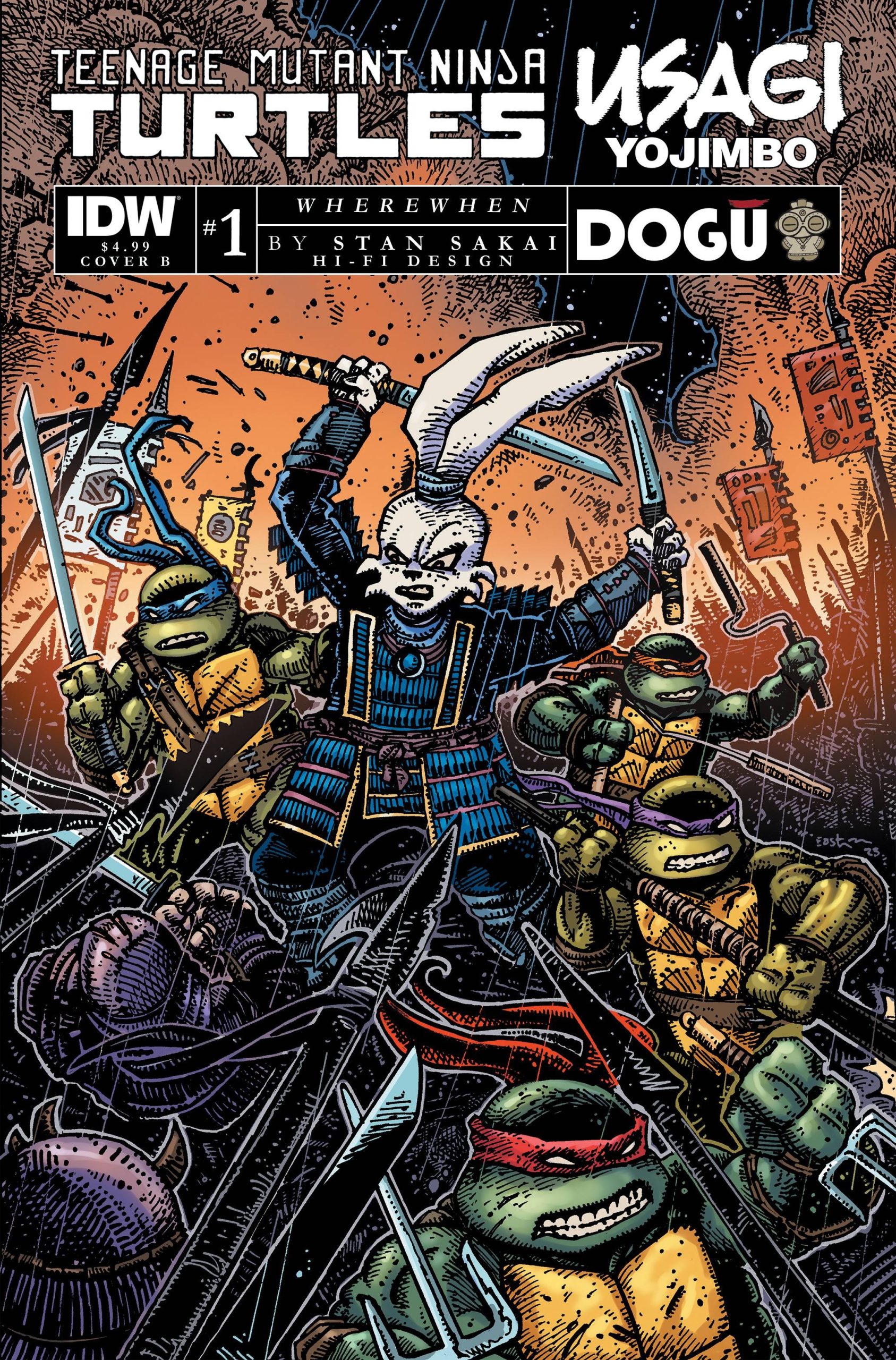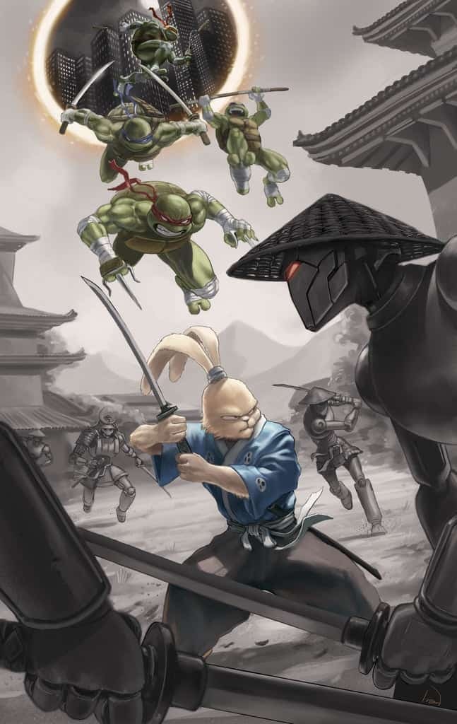 - Chaque numéro de ce crossover dispose d’une couverture wraparound réalisée par Stan Sakai.