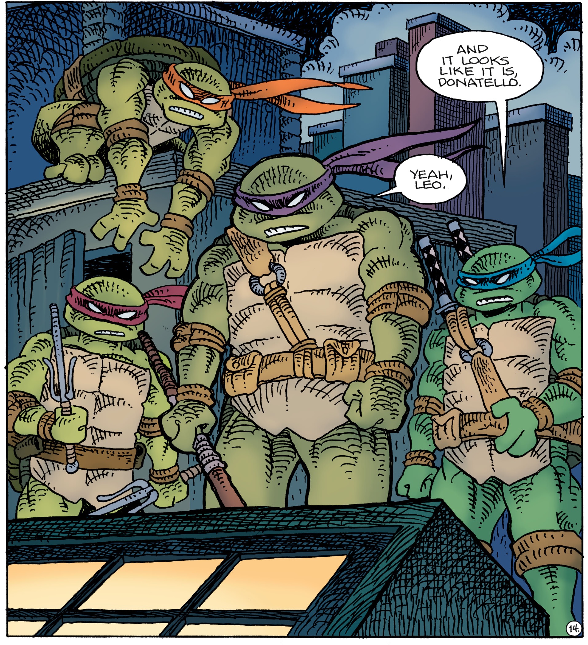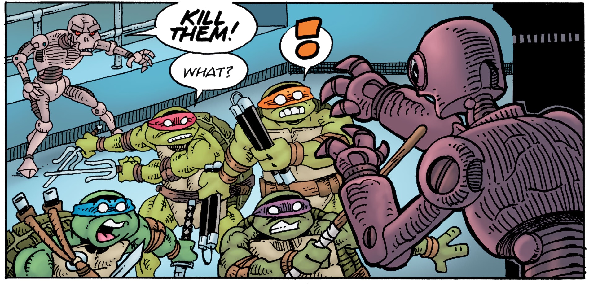 La nuit était tombée sur New York. Les tortues sortaient des égouts en direction d’un entrepôt. Elles étaient à la recherche de Wherewhen, un robot du futur bien décidé à conquérir son propre passé pour en devenir un puissant dictateur.