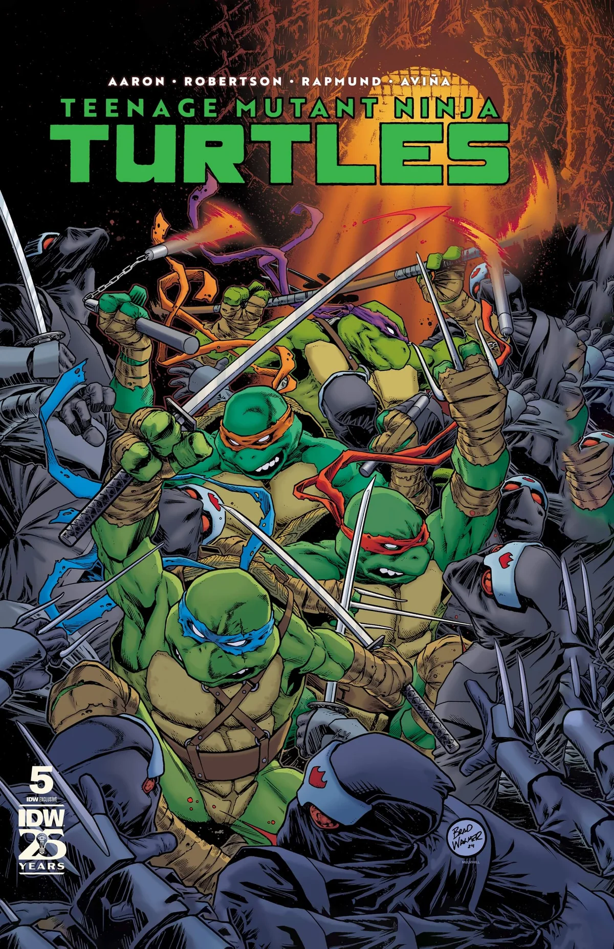 - TMNT #5 (2024) Hardcover exclusive edition – Brad Walker. Hardcover exclusive pour le site d’IDW Publishing. 19,99$. 18 décembre 2024.