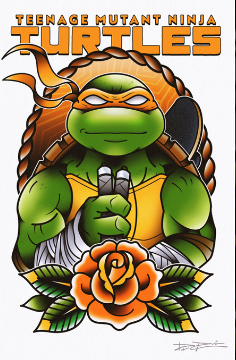 - La tenue jaune et noire que porte Michelangelo dans le métro est un hommage à celle de portait Bruce Lee dans le film Le jeu de la mort (1978). Une référence également au passé récent d’acteur de la tortue (TMNT (Vol. 6) #2).