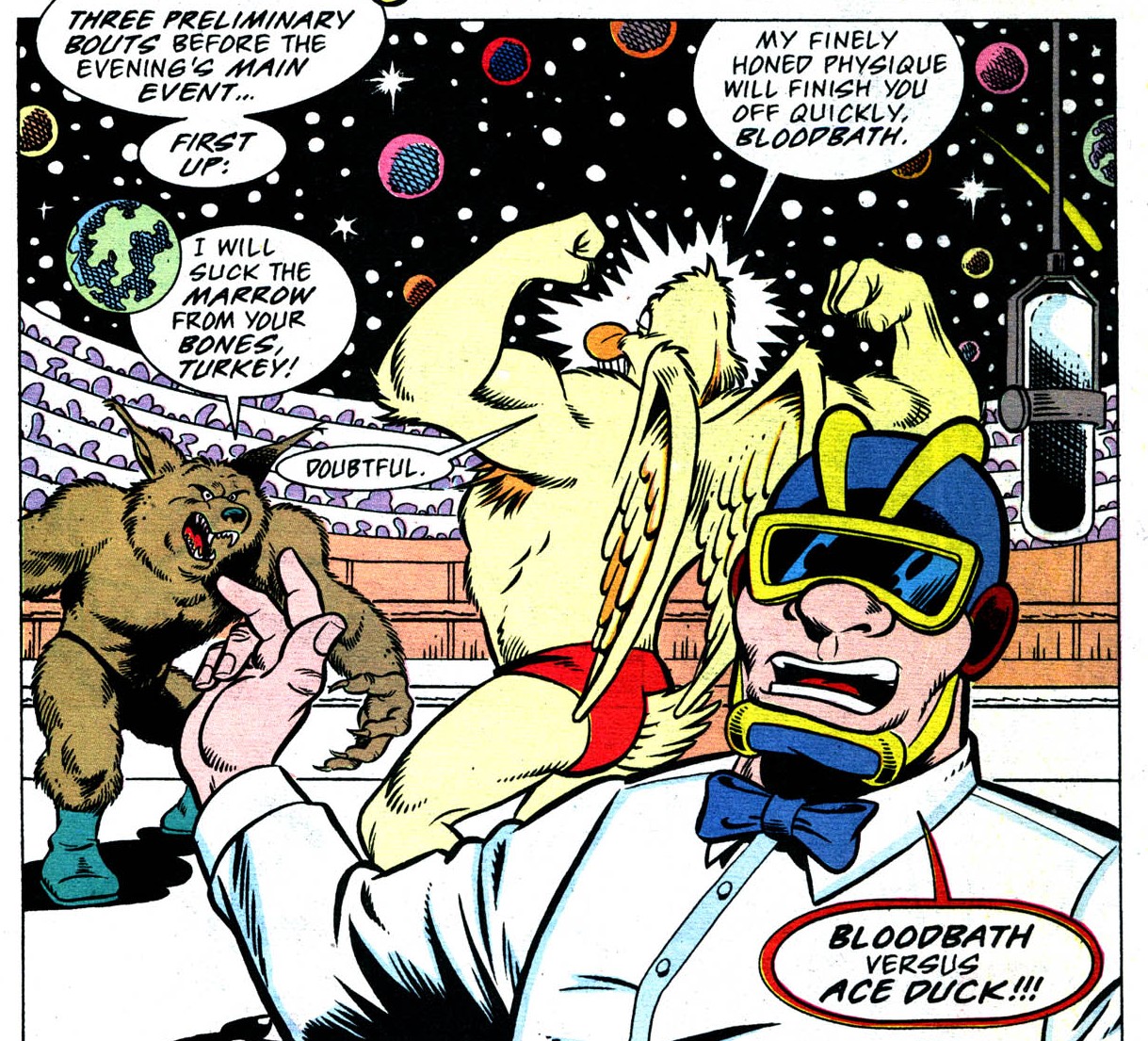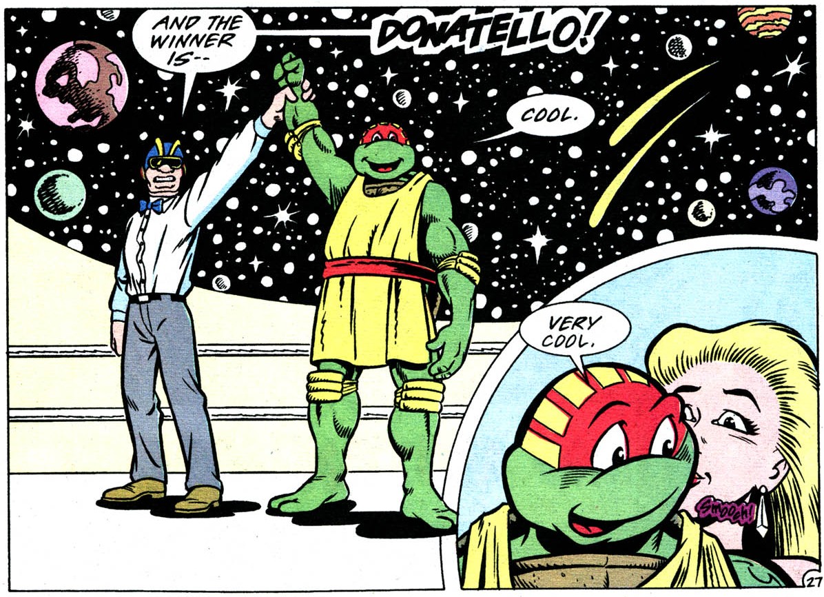 Par la suite, les tortues furent rappelées pour un combat sur l’Astéroïde Stump. Très prisées du public, elles durent s’affronter mutuellement avant que le gagnant joue le titre contre le meilleur catcheur de la compétition, El Mysterio. Trap était le présentateur de ces jeux et décerna le titre à Donatello (TMNT A. #37).