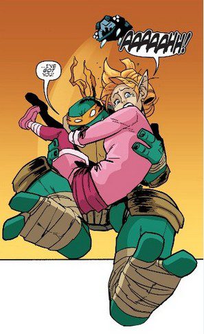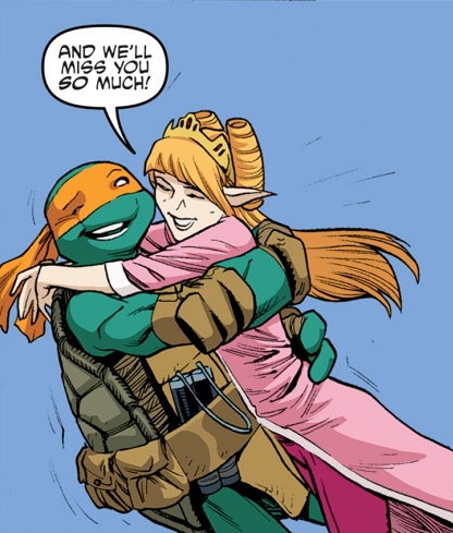 Hélas, il ne fit pas attention à ses parents, qui se trouvaient dans le même vaisseau. La tortue tomba très vite amoureuse de la princesse, qui avait beaucoup d’affection envers le mutant (TMNT #18).