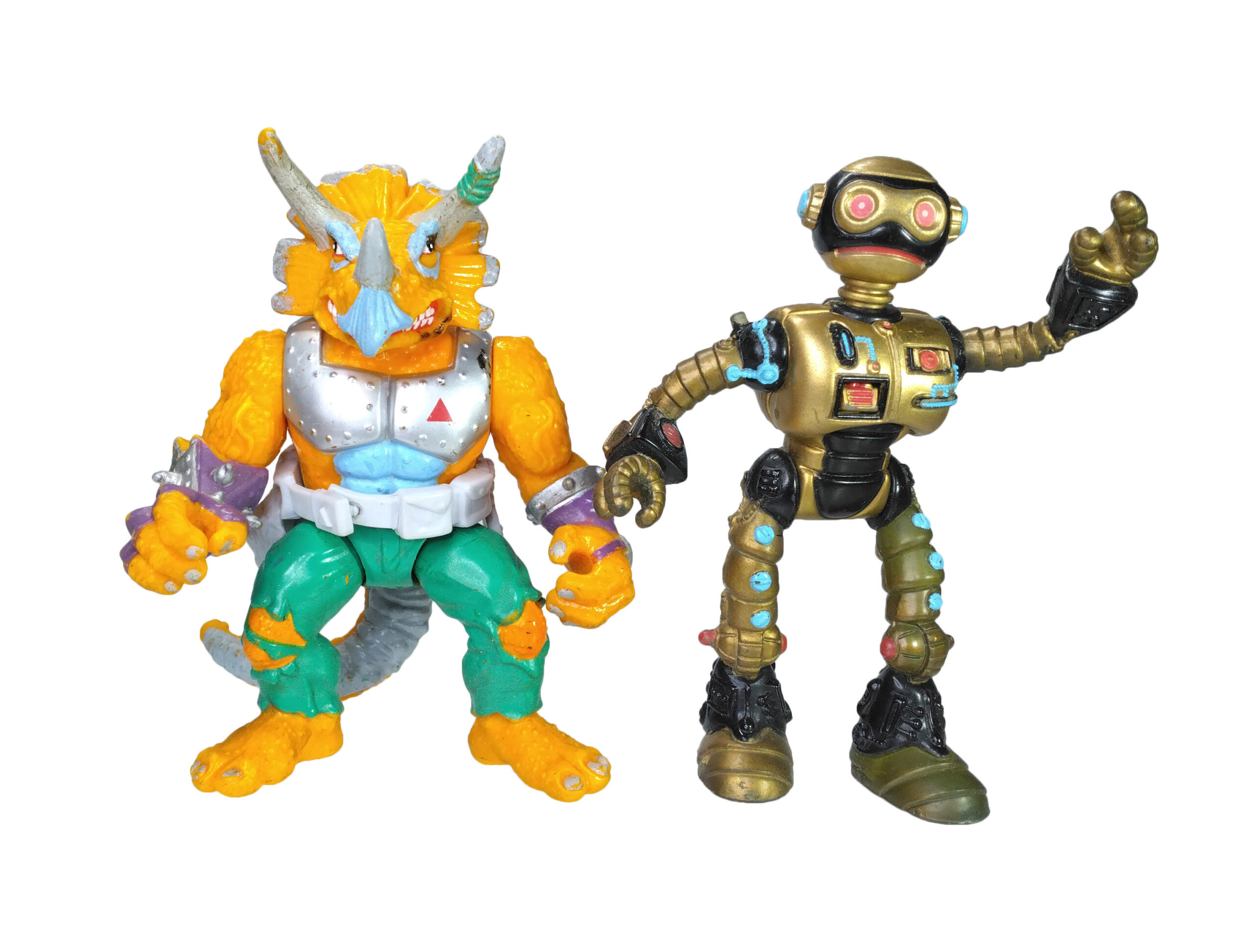 La figurine du triceraton est, comme le Fugitoid, très intéressante. Jamais ce personnage n’est apparu dans le dessin animé et nous vient tout droit de la dimension des comics de Mirage. Le bestiaire des Tortues Ninja n’était pas encore très développé fin 1989, raison pour laquelle il va très largement s’étoffer l’année suivante, aussi bien dans la série que dans les comics TMNT Adventures.