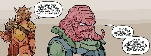 Les années passèrent et les missions de conquête devenaient de plus en plus nombreuses et les pertes conséquentes. Zog et son sergent, Zom, étaient épuisés de voir le peu de considération qu’avaient Quanin et l’Empire à leur égard. Zom essaya de monter son général contre Krang et son père, en vain. Zog refusait l’insubordination et surtout que son peuple paie une potentielle répression. Il comprit toutefois que Krang tenait à renverser son père du trône et demanda de manière indirecte à Zom de l’aider pour cela.