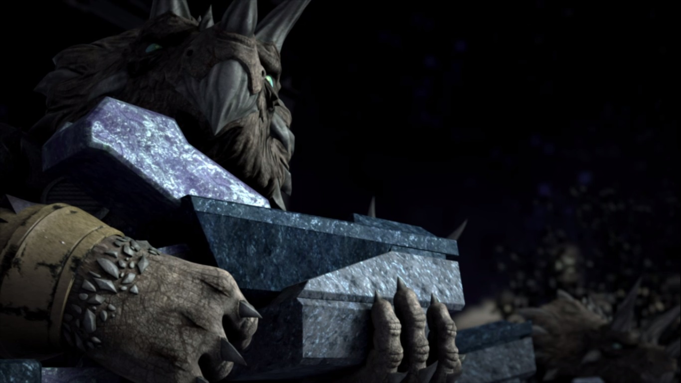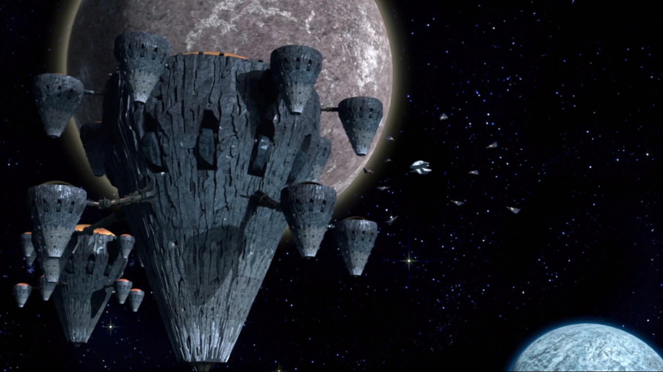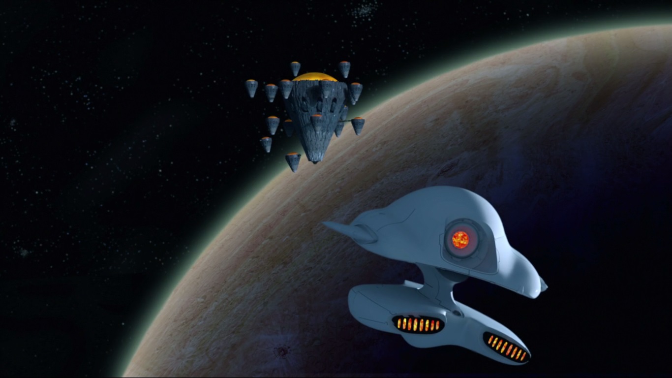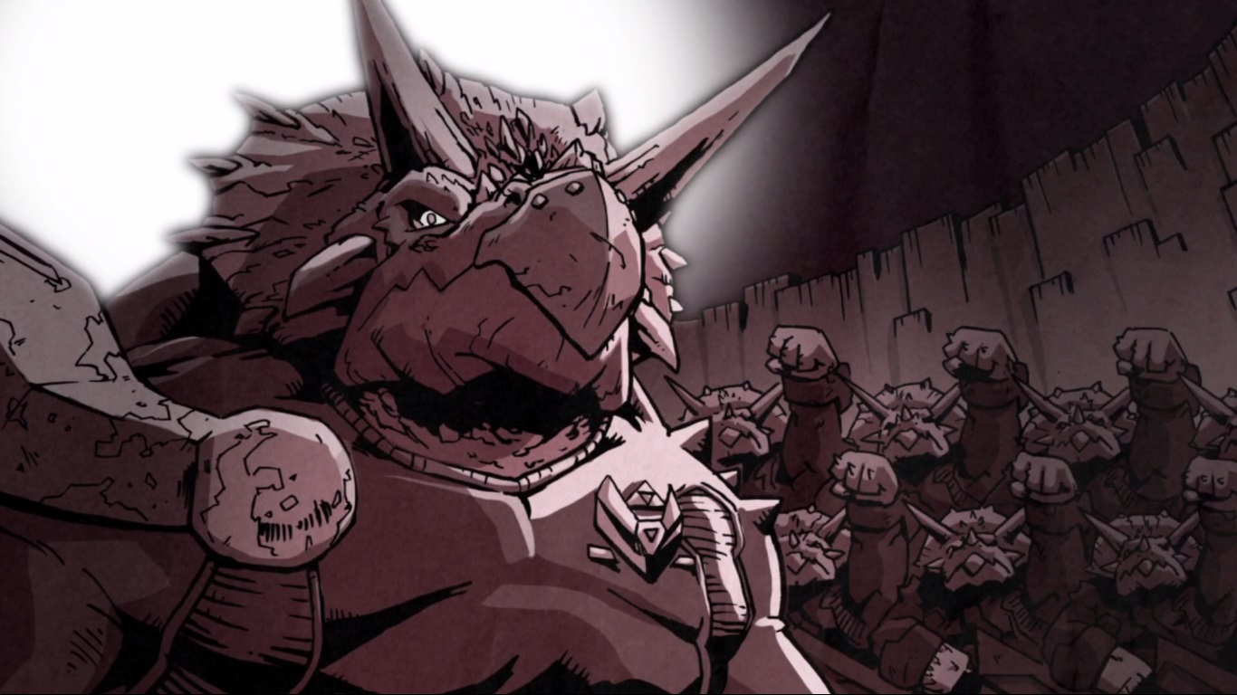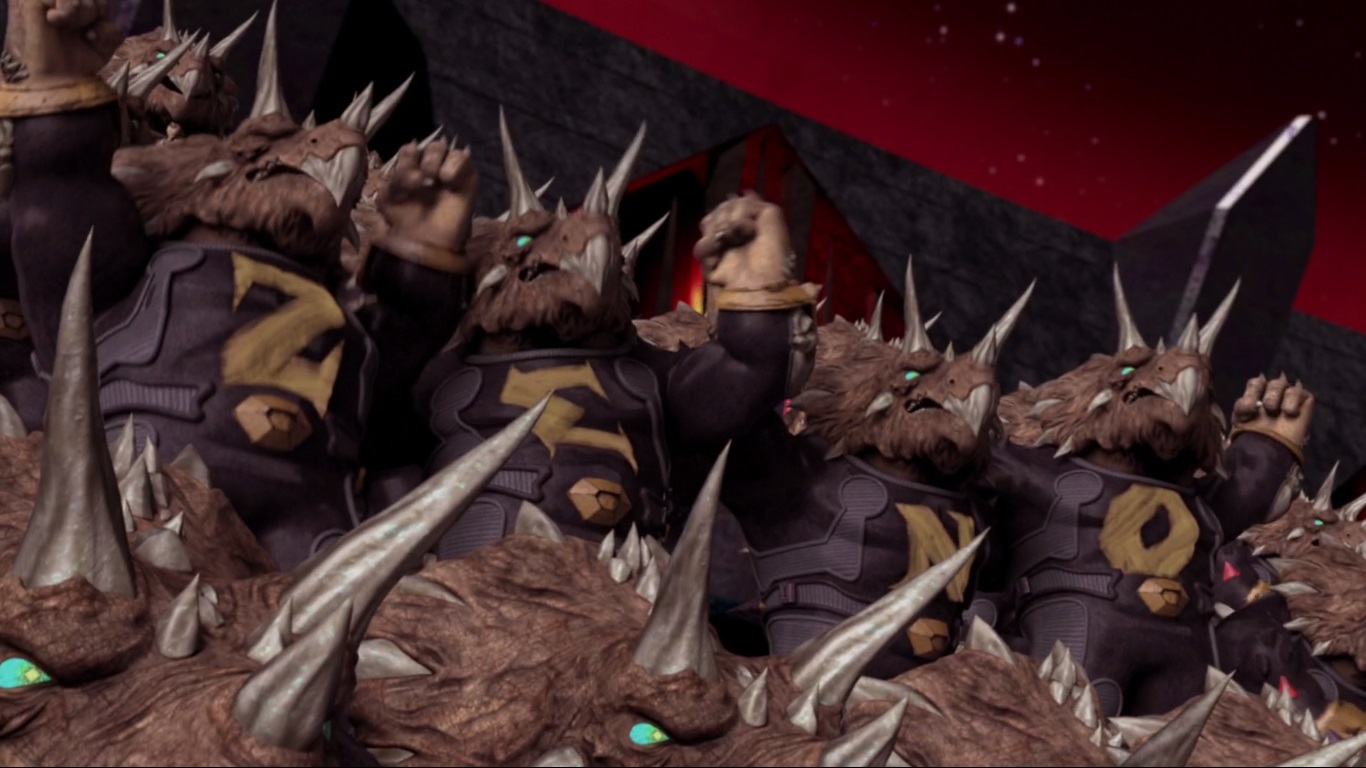 Après la destruction de leur planète par les kraangs, qui utilisèrent le générateur de trou noir, les derniers survivants se replièrent dans des rochers, derniers vestiges de leur monde en lambeaux, transformés en vaisseaux. Les triceratons jurèrent vengeance et veillèrent à éradiquer les kraangs de la galaxie à n’importe quel prix (Au-delà des frontières de l’espace, S4 E1).