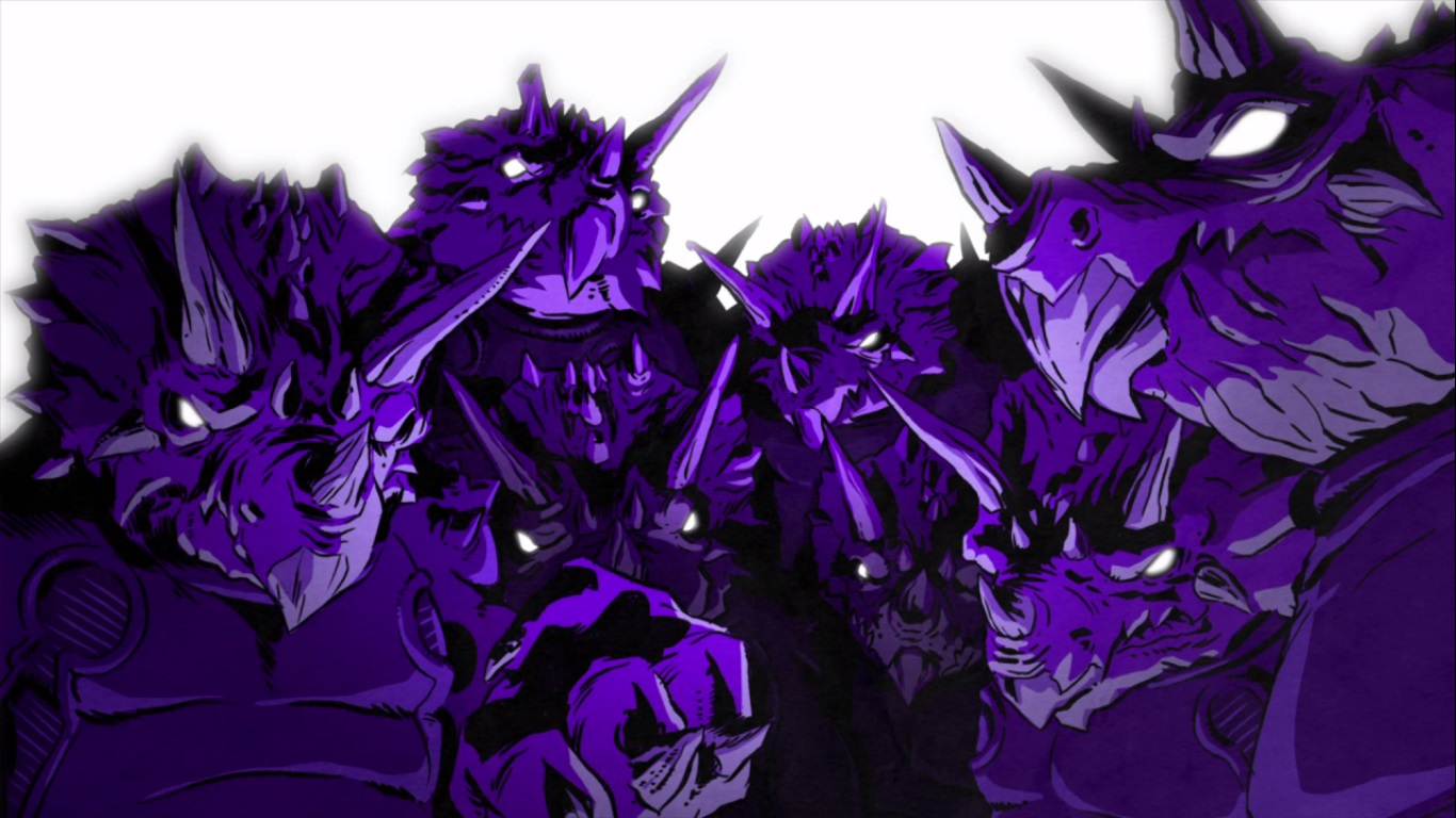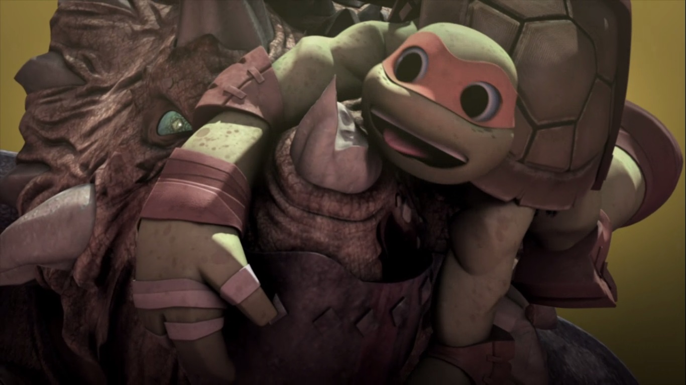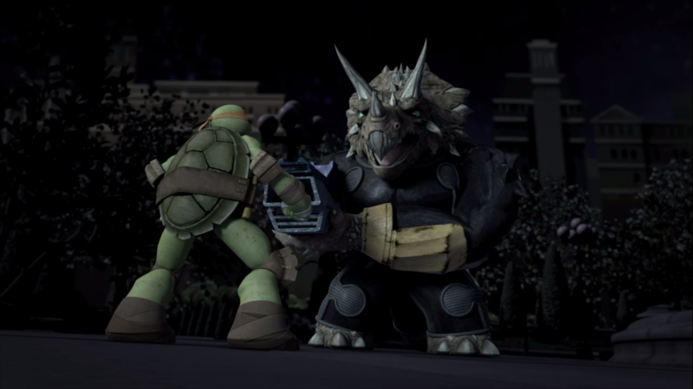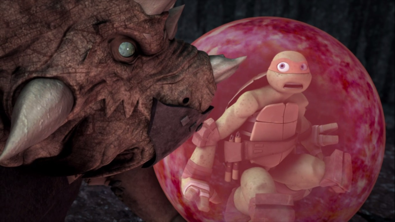 - Dans l’épisode La colère de Tiger Claw (S2 E18), dans le récit du tigre, il est possible de voir quelques scènes dessinées de son périple à travers les dimensions. Au cours d’un combat, il est possible d’apercevoir plusieurs triceratons.