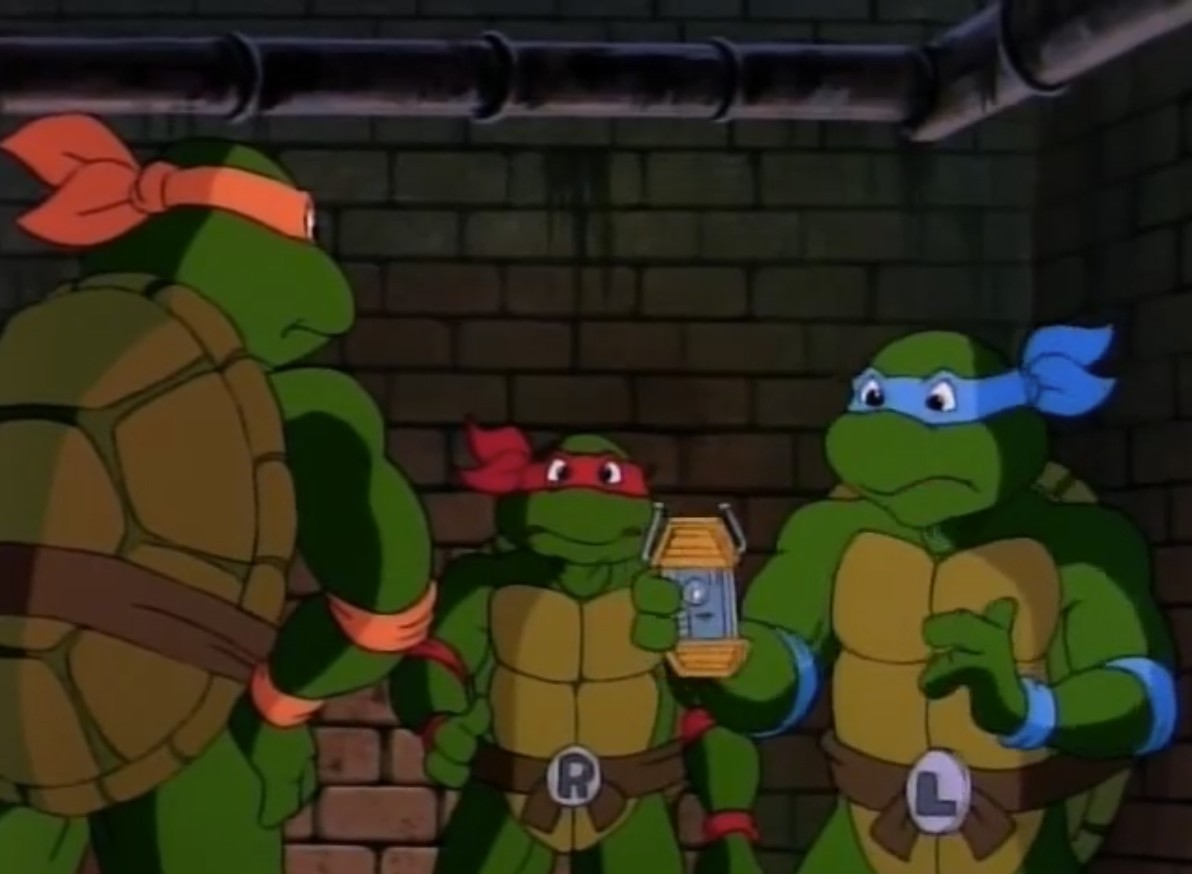 Donatello en a également fabriqué un sur mesure pour April, toujours dans une forme de carapace de tortue, mais s’ouvrant comme un poudrier.