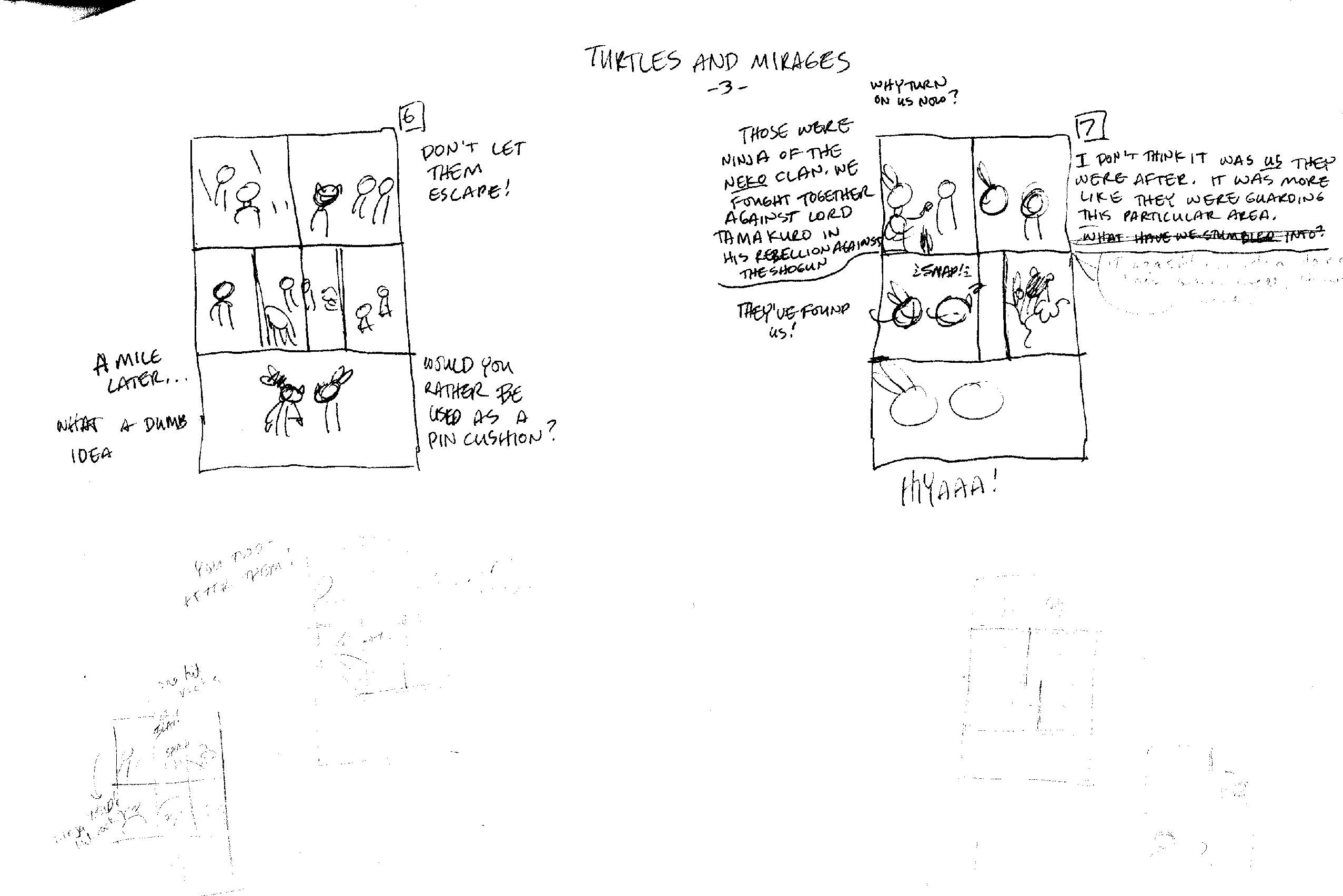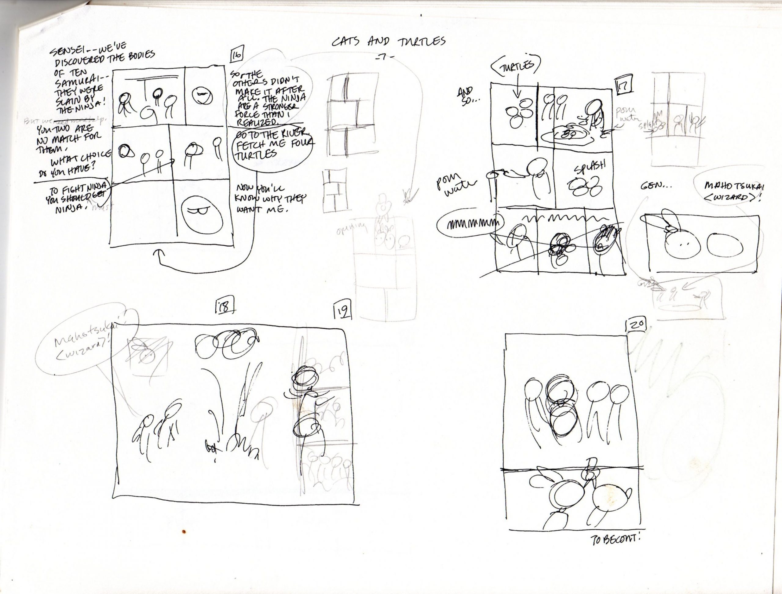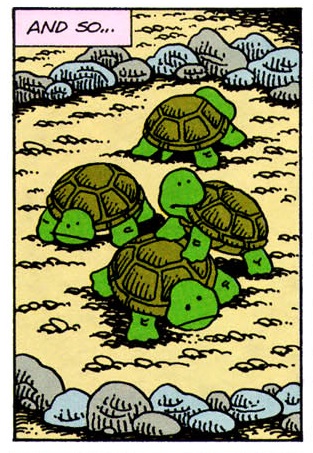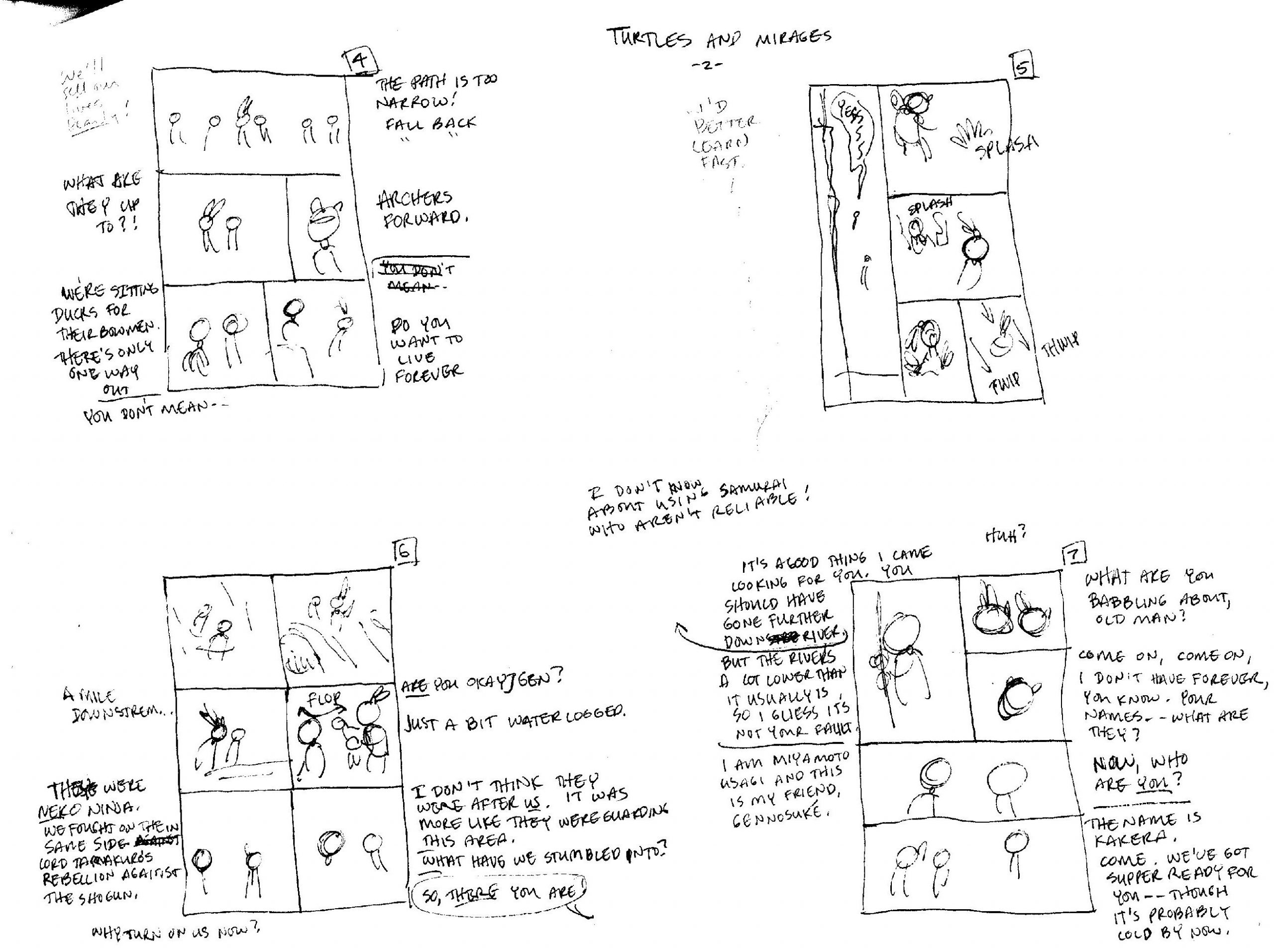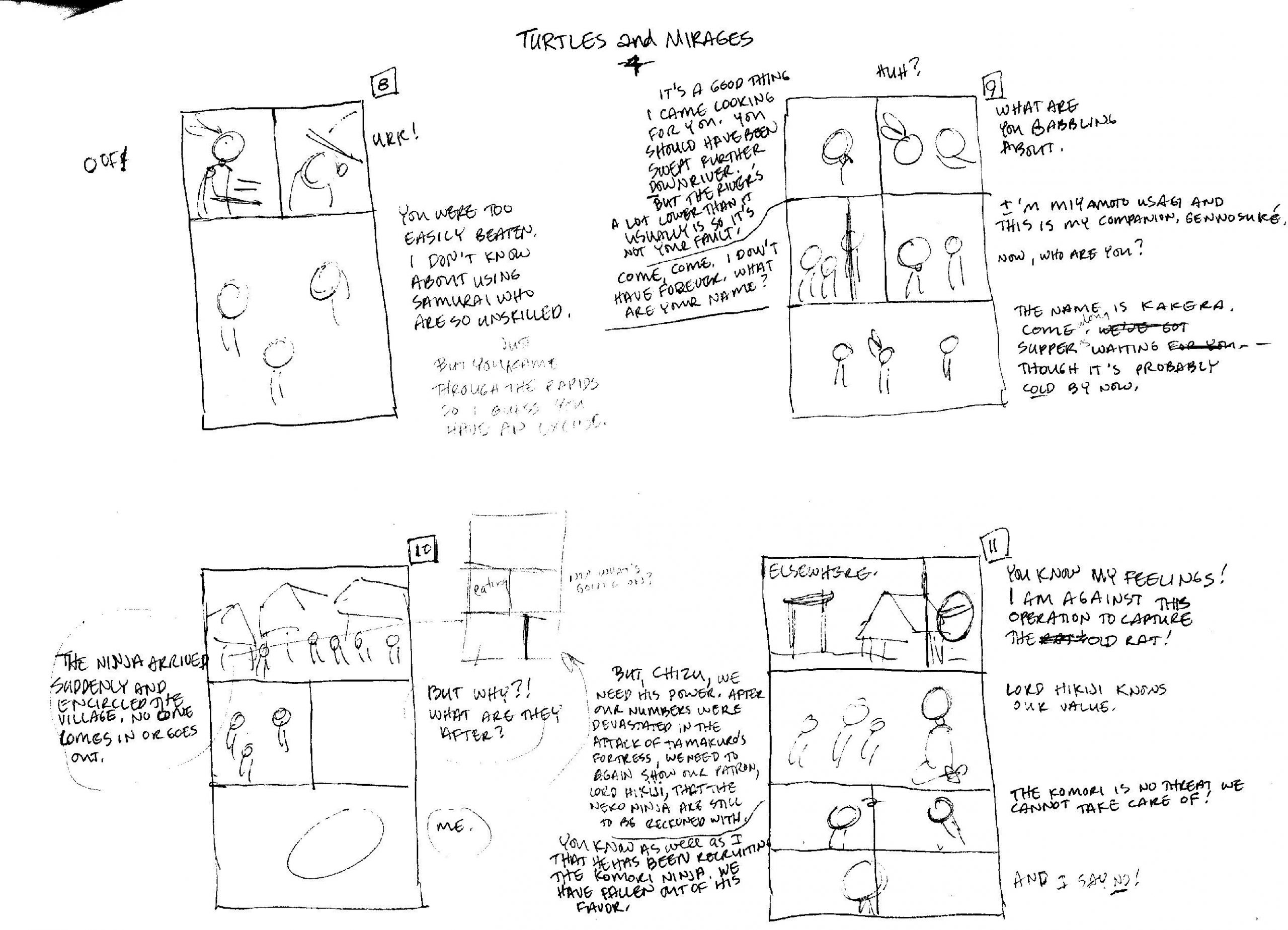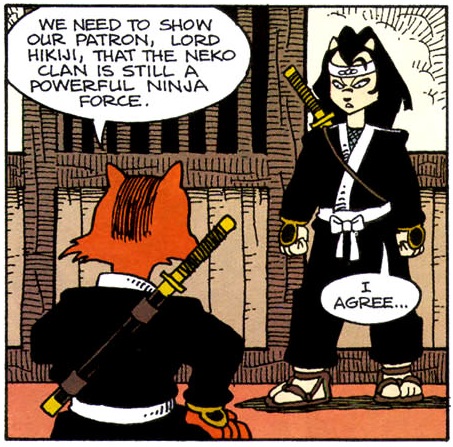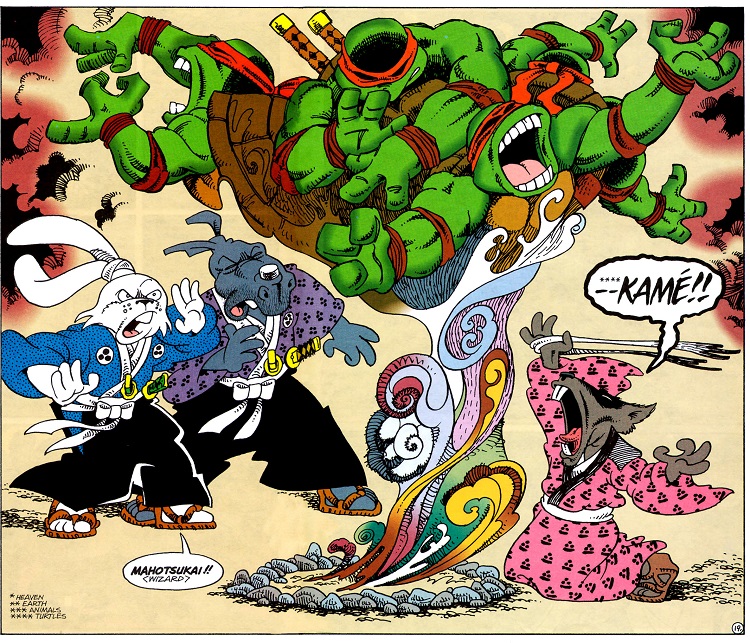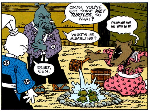 - Stan Sakai révèle que cette aventure aurait pu s’appeler Cats and turtles (Neko : chat) ou bien encore Turtles and mirages, en hommage à son arrivée à Mirage Publishing.
