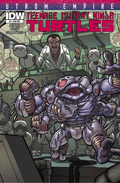 Se débarrasser de Krang était l’un des plus grands désirs du professeur Honeycutt. L’utrom à l’origine de la destruction de son peuple. Mais surtout de sa famille (TMNT micro-series : Fugitoid). Toutefois, se venger sur son peuple, innocent jusqu’à preuve du contraire, n’était pas une solution, surtout pour un esprit pacifiste comme lui. Le geste de Baxter allait entraîner le courroux du général utrom. La situation deviendrait désespérée pour les humains sur lesquels il irait certainement se venger. Les bocaux de stase étaient déjà presque vides, le Fugitoid devait agir au plus vite et partait trouver Krang, accompagné de deux de ses soldats de pierre. Le voyant apparaître, les brutes lui sautaient dessus. Le robot parvenait malgré la lutte à prévenir le général de la catastrophe qui s’annonçait. Préalablement, il avait caché Baxter, inconscient, dans un placard à balais. Une fois dans la salle de stase, Krang ne comprenait pas que les systèmes de sécurité n’avaient pas alertés du dysfonctionnement des tubes. Il allait devoir sortir pour les rebrancher. Seul lui et son corps robotique pouvaient supporter la tempête qui s’abattait sur l’île.