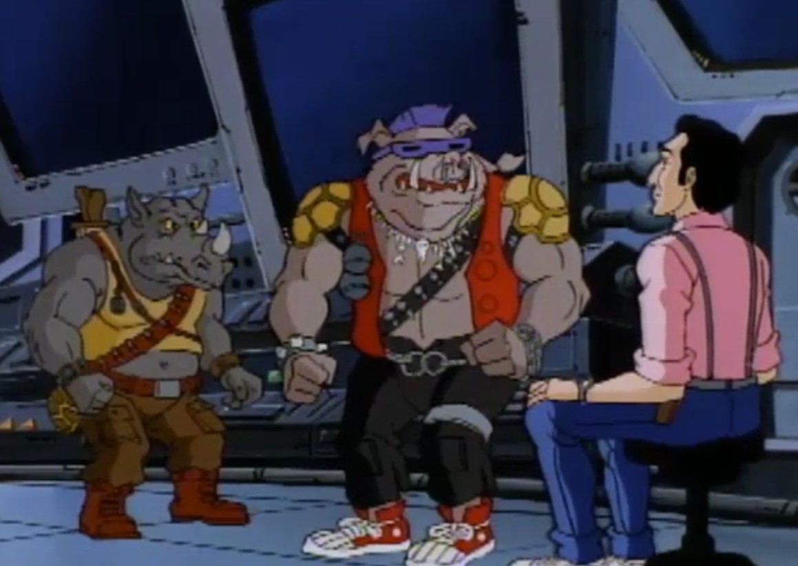 Le personnage de Vernon a été adapté pour la première fois après ce dessin animé pour le film de 2014. Son personnage était surnommé Vern et se distançait du lâche qui voulait mettre des bâtons dans les roues d’April pour s’orienter vers un homme banal qui devient un héros malgré lui et attiré par April. Il était campé par Will Arnett.