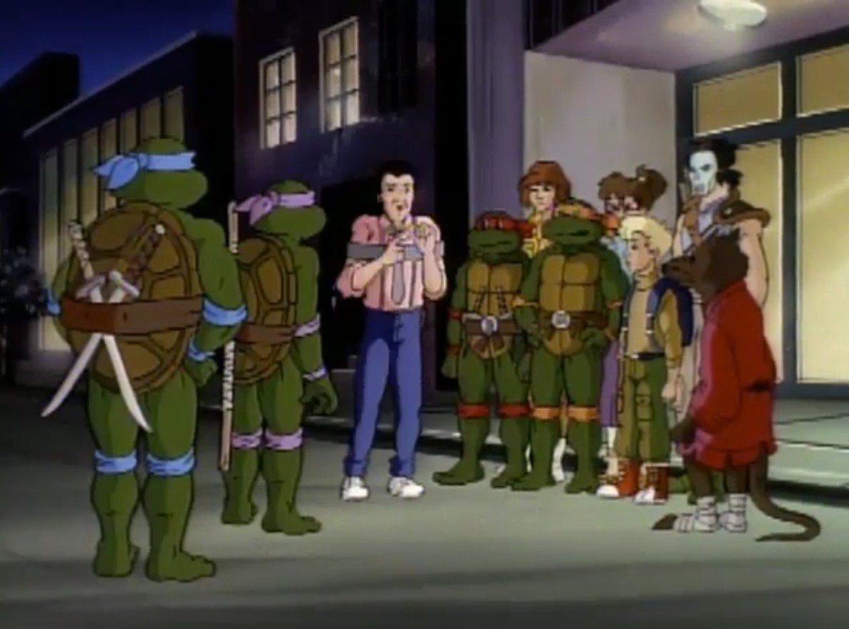 Son supérieur Burne Thompson était nostalgique du temps où il arpentait les rues de la ville à la recherche d’informations pour des reportages. Il prit Vernon avec lui pour trouver la trace des tortues et réaliser enfin un reportage digne de ce nom sur les quatre frères. Ils se firent tous deux capturer par les hommes de don Turtelli, qui pensait que l’on en avait contre lui. Puis se firent enlever par des extraterrestres, bien décidés à les faire parler (Un bon reportage, S3 E7).