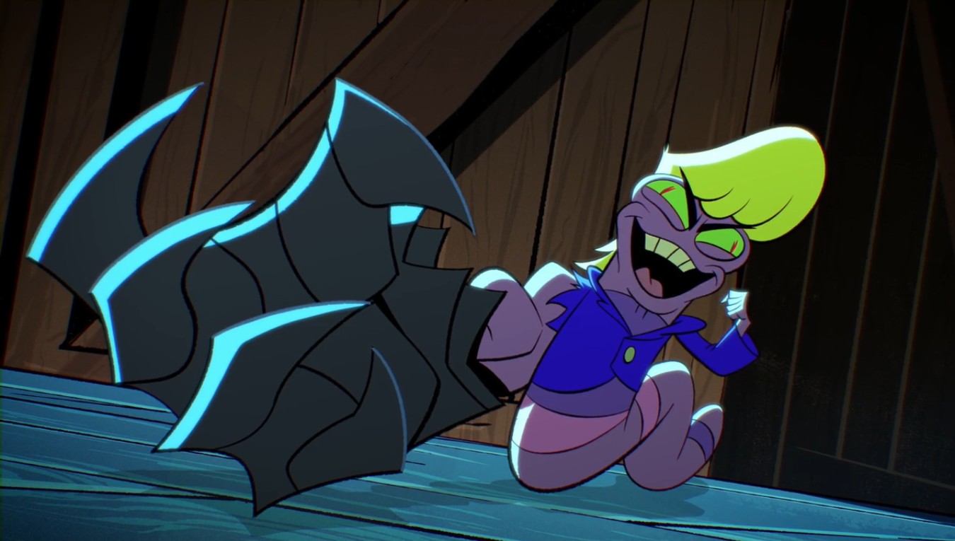 Le ver, toujours assoiffé de vengeance contre les tortues, était apparu dans un musée qui était attaqué. Il s’était fait une fois encore balayer et ignorer par ses adversaires, jusqu’à découvrir un gantelet de métal magique. Celui-ci lui conférait une incroyable force au bras droit (Quatre-en-un, S1 E16).
