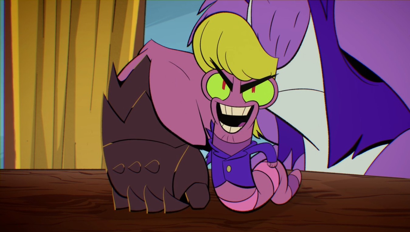 Le ver se savait poursuivit et l’alchimiste le retrouva dans son appartement. Hypno-Potamus essayant de protéger son ami, fut capturé et utilisé comme monnaie d’échange. Les tortues décidèrent d’aider Warren et se firent prendre au piège par le ver, qui espérait troquer sa prise par celui qu’il considérait comme son frère. Draxum piégea tous ses adversaires, mais Hypno-Potamus délivra les tortues, ayant lui-même été doublé par l’alchimiste. Warren fut saisi par les bras par les deux camps et April lui sectionna son bras, laissant le gantelet à Draxum, qui prit la fuite. Une haine envers April naquit chez le ver à la suite de cette aventure (Warren et Hypno, les inséparables, S1 E30).