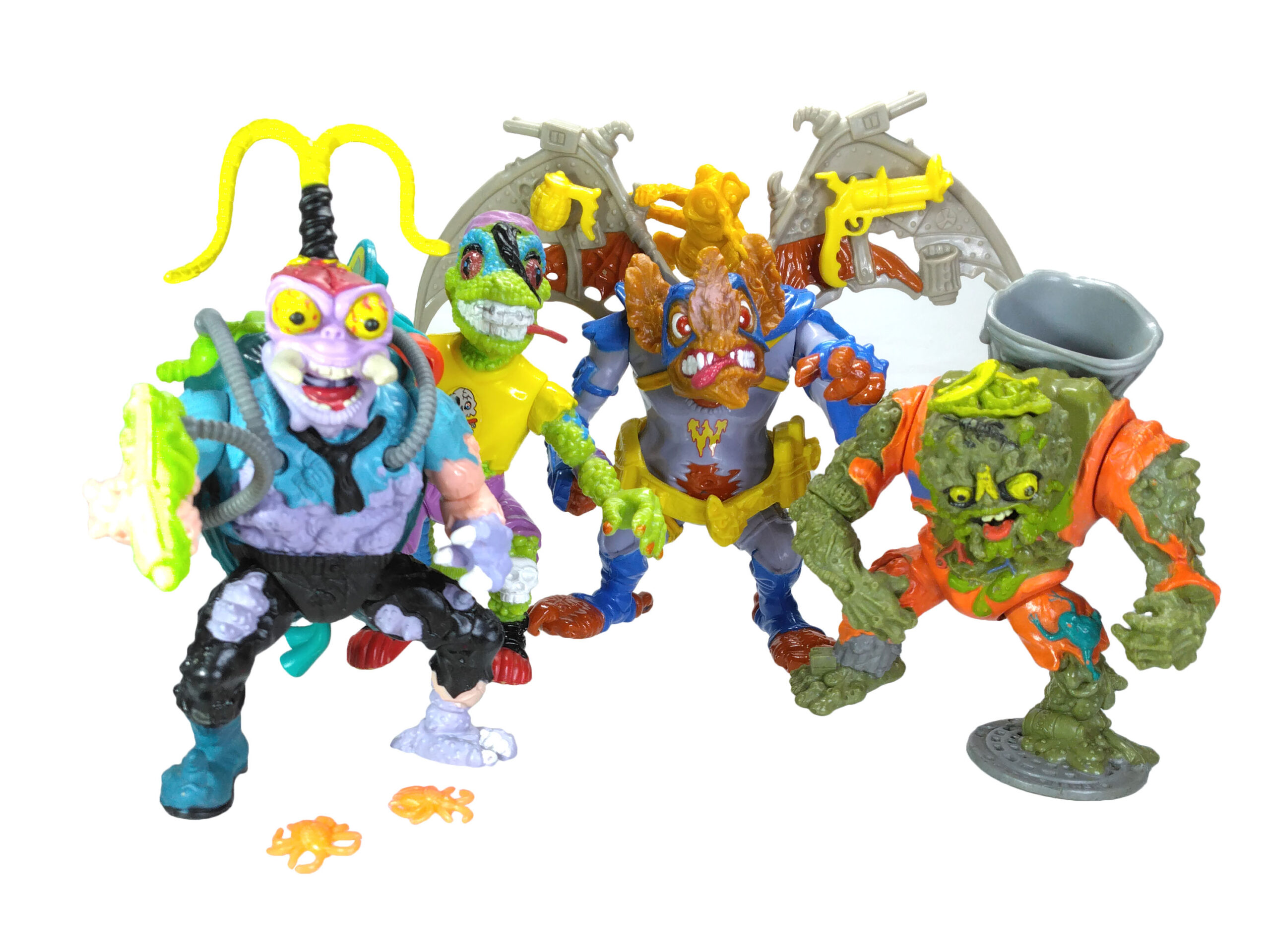 À partir de 1990, Playmates va accompagner ses personnages de « sidekicks », ces petits compagnons comme Joe Eyeball pour Muckman, Fish Stix pour Ray Fillet ou encore la mouche mutante de Napoleon. Ces personnages n’étaient pas peints, simplement laissés de la couleur du plastique de moulage. Niveau détails, le résultat est loin d’être ridicule, malgré l’échelle réduite. Comme il s’agit d’une seule pièce moulée, elle ne propose pas une gestuelle très originale. Le moustique est réalisé dans un plastique jaune. Nous reconnaissons son visage et sa longue trompe en forme d’éclair. Dans son dos, il possède des ailes (non articulées). Screwloose est doté de deux paires de bras et de deux jambes. Sa gestuelle est prévue pour pouvoir le placer à différents endroits entre les ailes et la tête de Wingnut. En revanche, il n’est pas possible de le faire tenir debout ce qui est assez dommage.