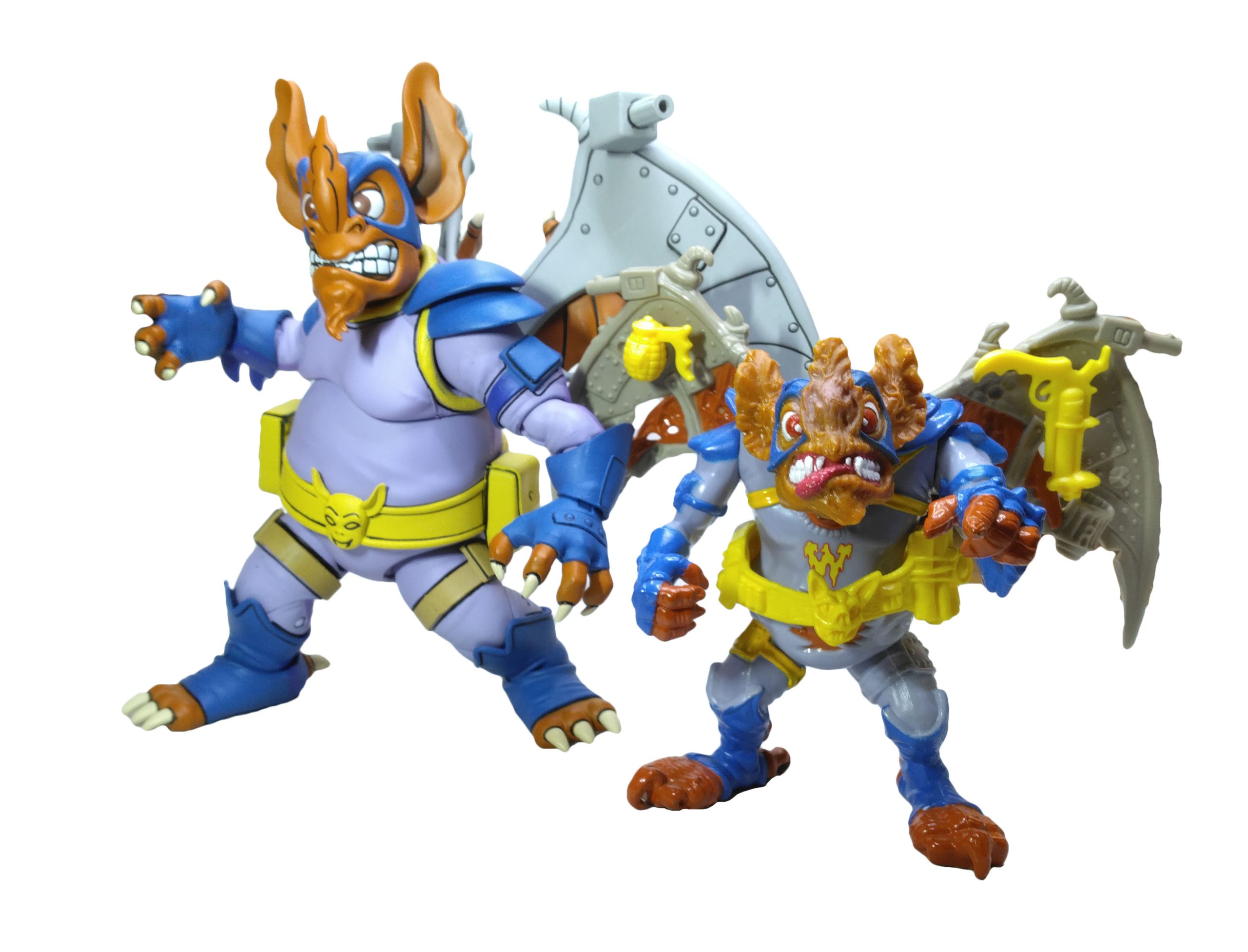 Autre détail qui cocasse, l’origine de ces deux personnages. La fiche bio les présente comme étant originaires de la planète Huanu. Pourtant, il est également dit qu’ils sont nés à Belfry, en Transylvanie ! Les ailes mécaniques de la chauve-souris auraient été conçues par Donatello.