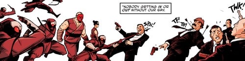 Lors du siège du quartier général du Foot Clan par Karai, Yumiko intervint très rapidement dans les appartements de Splinter pour lui venir en aide, accompagnée de quelques gardes d’élite. Ils furent tous massacrés par les griffes d’Ocho, Yumiko la dernière (TMNT #97).