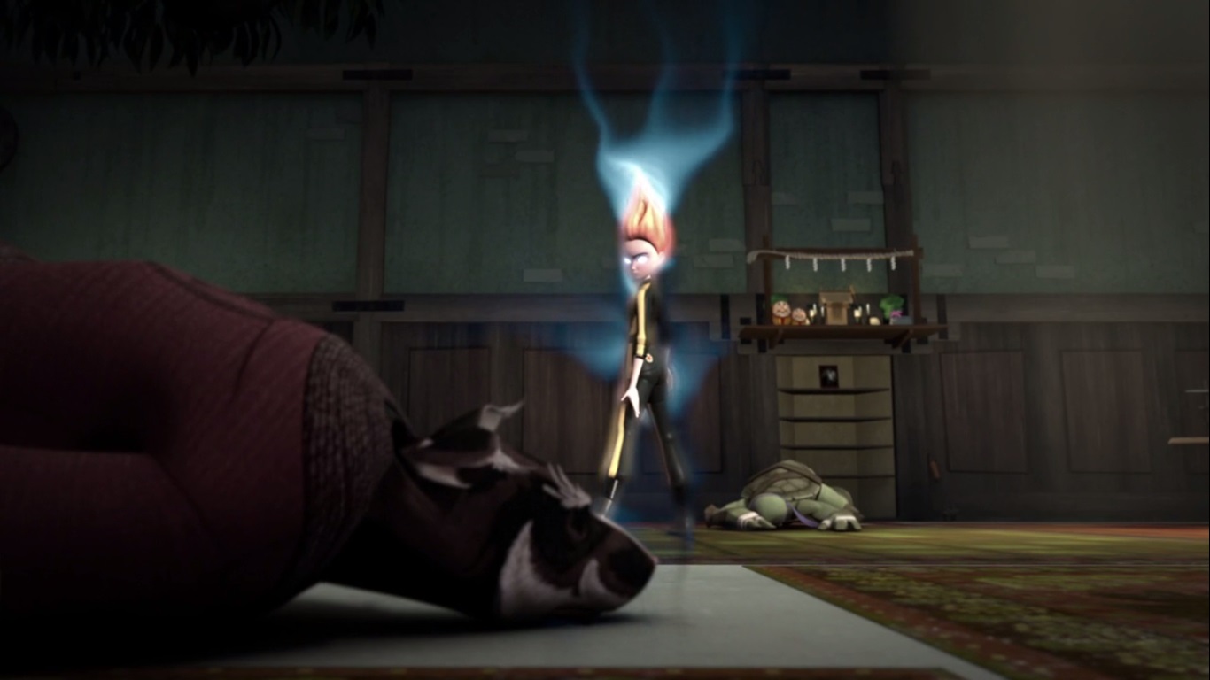 En réalité, Za-Naron cherchait à prendre possession de son corps, petit à petit. La créature désirait détruire l’humanité corrompue en commençant par New York. Après avoir désintégré Donatello, l’être supérieur fut arrêté par April qui brisa l’envoûtement puis jeta le cristal au sol. L’artefact brisé, Za-Naron s’échappa de son corps et fut tué par l’adolescente (Cette force en elle, S4 E22).