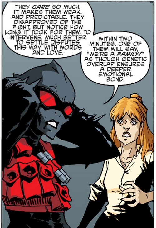 Cherchant les animaux dérobés, ils tombèrent sur le scorpion qui leur fit passer un sale quart d’heure. Elle était bientôt rejointe par Krisa, un nouveau mutant python de l’entreprise (TMNT Universe #19). Alopex raisonna le reptile, ce qui la fit rejoindre leur équipe un temps. Elle immobilisa Zodi, surprise par le retournement de situation. Cela laissa le temps aux deux amis de retrouver les animaux dérobés et les extraire du bâtiment. Krisa refusa de suivre Alopex et Raphael, malgré l’insistance de la renarde, qui lui promit de revenir l’aider. Peu après, Zodi et Krisa allèrent s’expliquer dans les bureaux de madame Null. Le scorpion assuma l’échec de la nuit dernière, omettant de dire que le python les avait trahis. Elle savait exactement comment gagner, encore innocente, sa confiance (TMNT Universe #20).