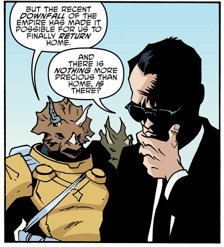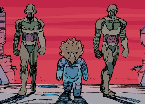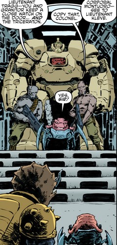 Tous deux étaient épuisés de voir les leurs périr inutilement pour assouvir la faim incessante de pouvoir de l’Empire utrom. Revenant d’une mission où les triceratons avaient perdu beaucoup des leurs, Zom demanda à son général de se soulever contre l’Empire. Il était hors de question pour Zog de trahir ses supérieurs, bien que l’envie ne manquait pas. Il ne pouvait se permettre de condamner les siens. Partant aux archives enregistrer les triceratons tombés au combat, Zom entra par effraction dans la base de données générale pour voir combien des leurs étaient déjà morts depuis qu’ils avaient été créés. Elle découvrit par horreur que les triceratons actuels avaient été clonés depuis l’ADN de Zog, unique triceraton originel encore en vie.